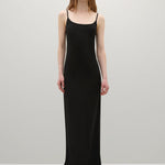 A Emery Echo Dress in Black. Crafted from premium matte triacetate, the Echo Dress is an elegant slip dress cut on the bias to drape effortlessly across the body. Featuring slim straps and subtle darting, this elegant style will become a wardrobe staple.