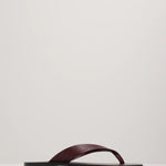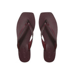 A Emery Kinto Sandal in Mulberry Lizard. The Kinto sandal is a modern flip flop that sits atop our classic square toe footbed.