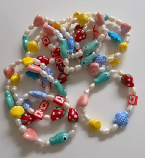 Petite Chou Le Piscine and Pearl Bracelet on Brown Cord