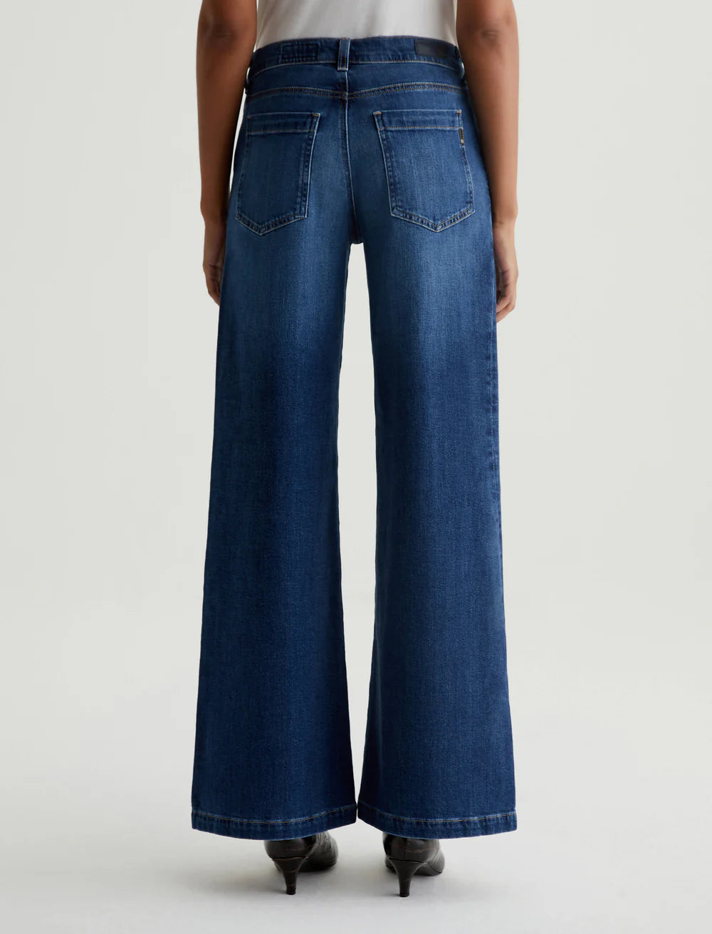 Our Stella palazzo pants are designed to be slung low on the waist and feature a super-wide cut through the legs. Made from comfortable 10 oz. Daytripper Stretch Denim, these wide-leg jeans come in a dark indigo wash with fading and whiskering. Contrast stitching and copper-tone hardware detail the classic five-pocket design.