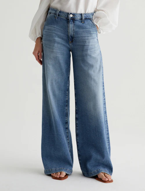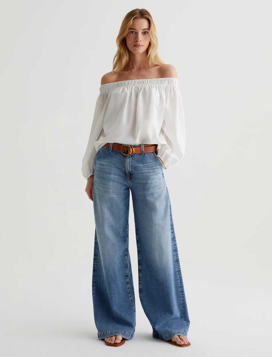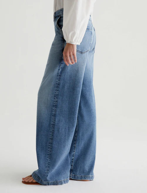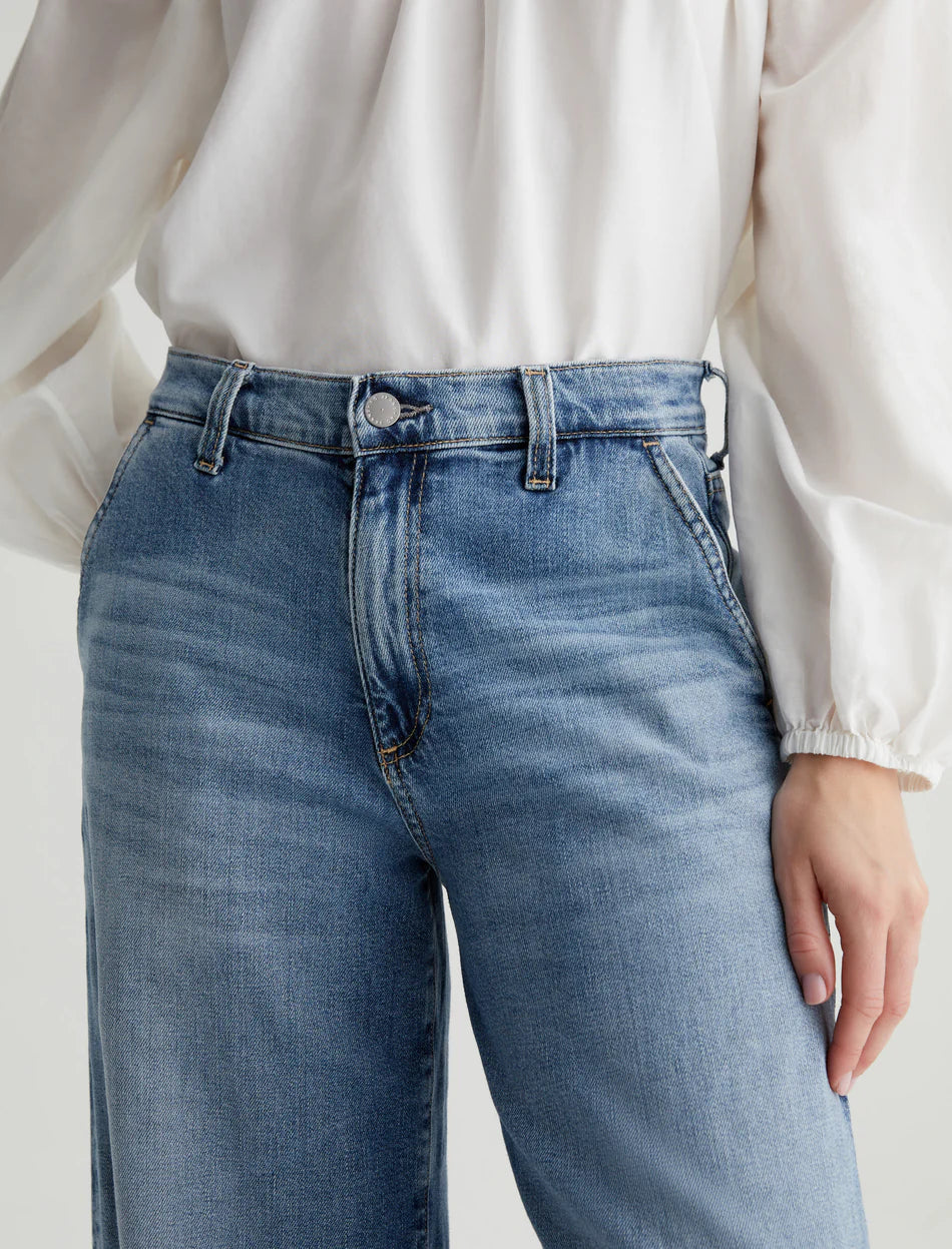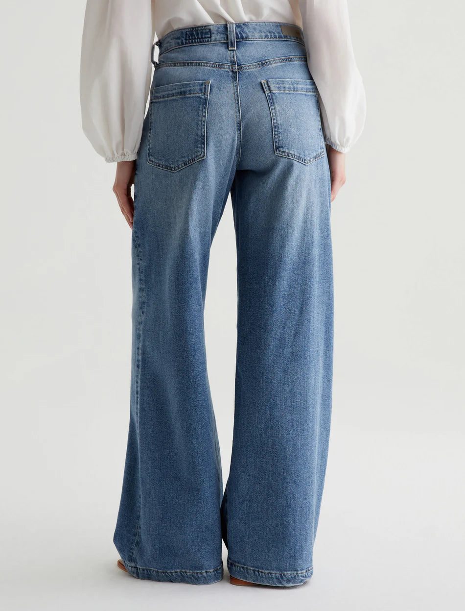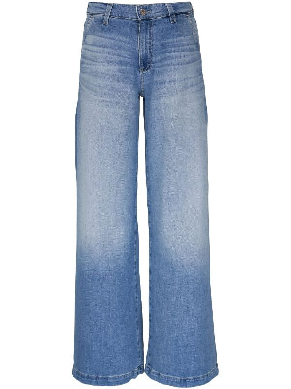 Our Stella palazzo pants are designed to be slung low on the waist and feature a super-wide cut through the legs. Crafted from 10 oz. Daytripper Stretch Denim, these wide-leg pants come in a light indigo wash with fading and whiskering. Slant pockets finish the look.