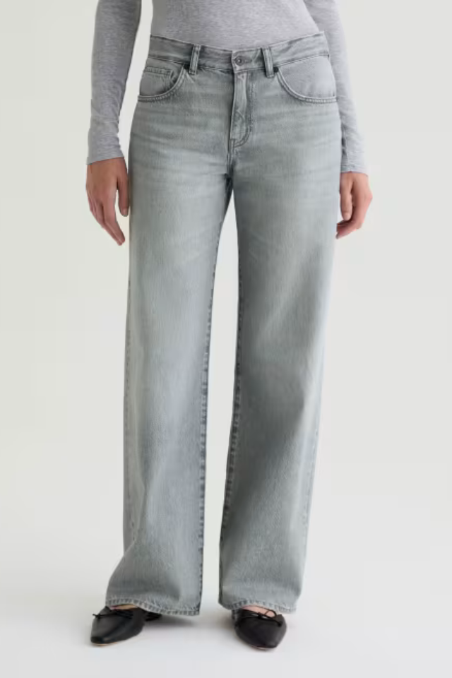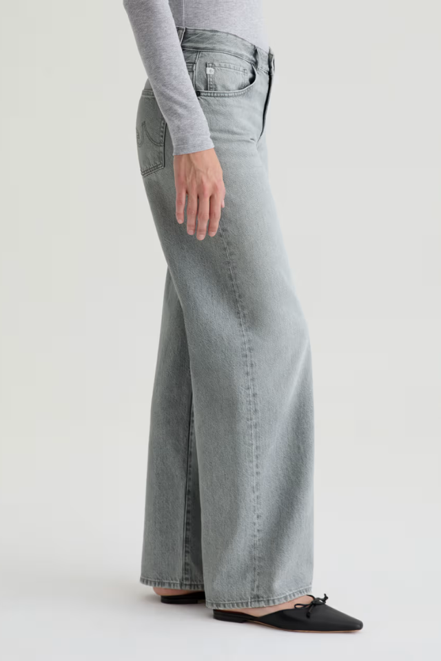 AG Jeans Adria Jean in Al Fresco. Adria is a low-rise, wide-leg pant that channels effortless edge with a relaxed silhouette. Made from non-stretch denim, it offers a structured feel that holds its shape and gives the style a vintage-inspired drape. It’s a piece that adds bold character to your everyday rotation.
