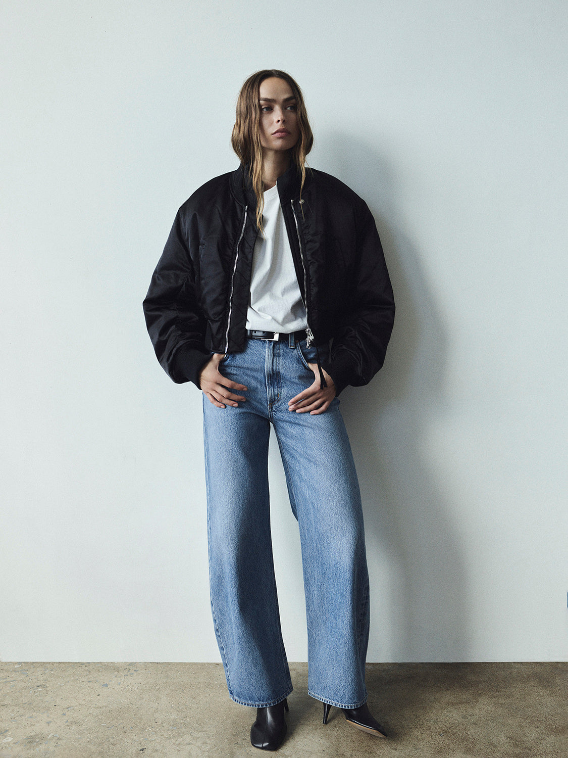 Agolde Low Curve Jean in Fairway. An updated twist on the barrel leg trend. This fit offers a comfortable and easy top block with a mid-rise waist. The sleek, low curved out seam gently tapers down to the ankle for a subtle yet sophisticated look.