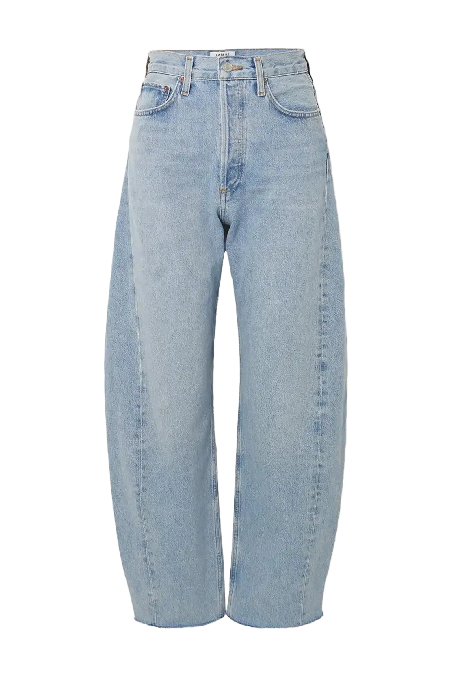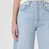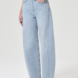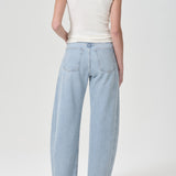 Agolde Luna Pieced Jean in Void. Structured to perfection. The Luna is designed with a waist-accentuating high-rise and a full-length relaxed leg. The pieced insert detailing at the outseam creates a bowed leg silhouette, ideal for taking your everyday denim to the next level.