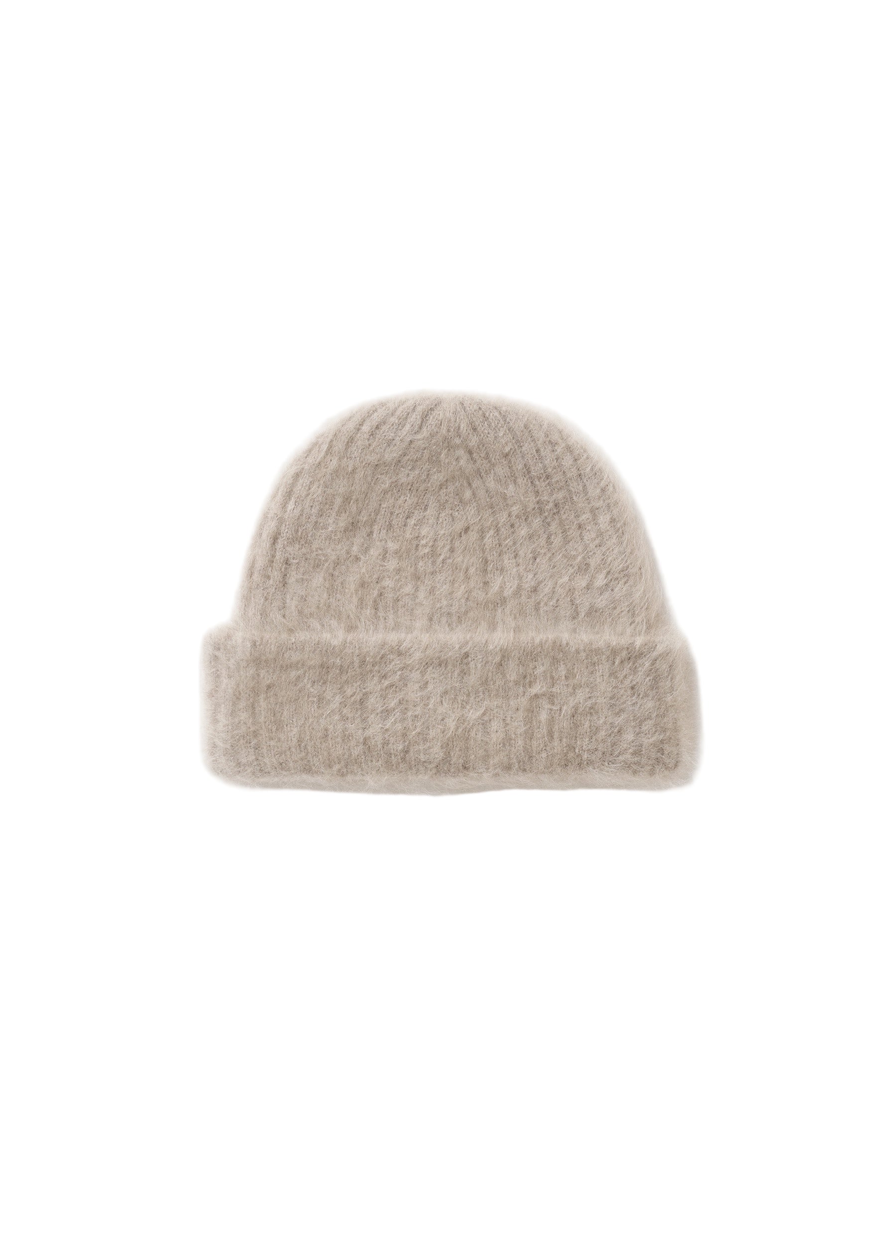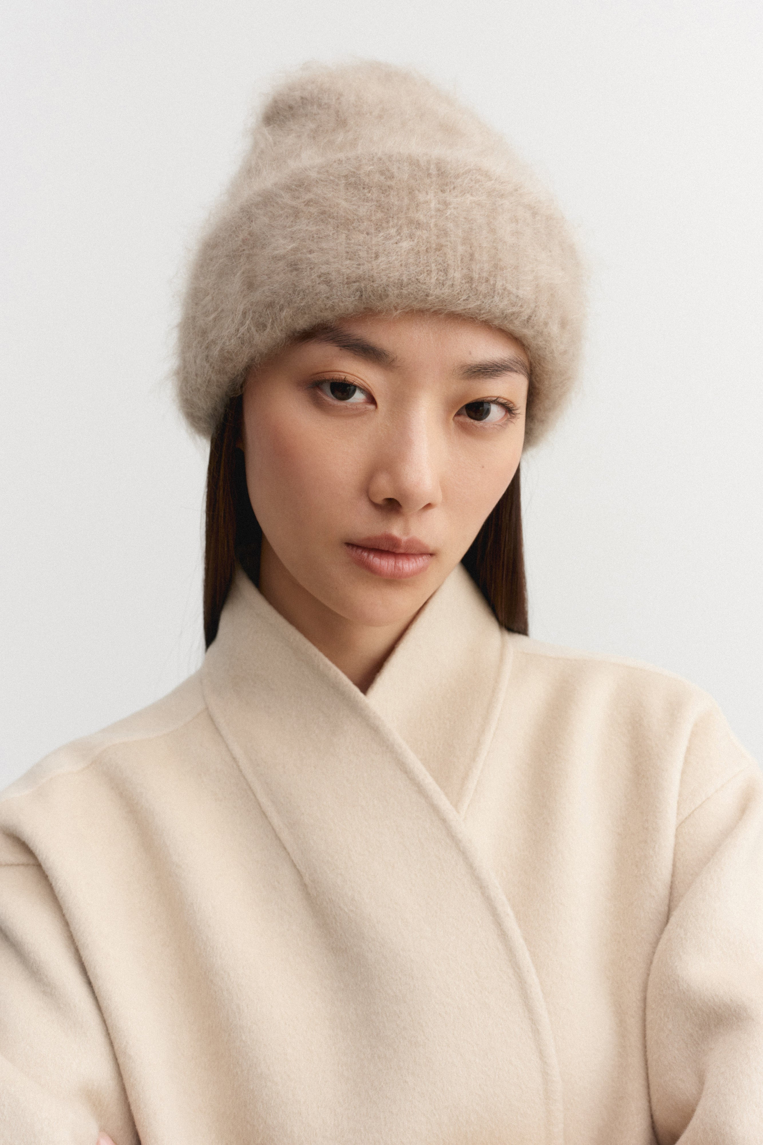 Almada Roe Brushed Beanie in Nougat. Roe Cashmere Beanie is double knitted from 100% organic cashmere that feels super soft against the skin and doesn't itch. It's ribbed for a comfortably cozy fit and has a wide fold-over brim for extra warmth.