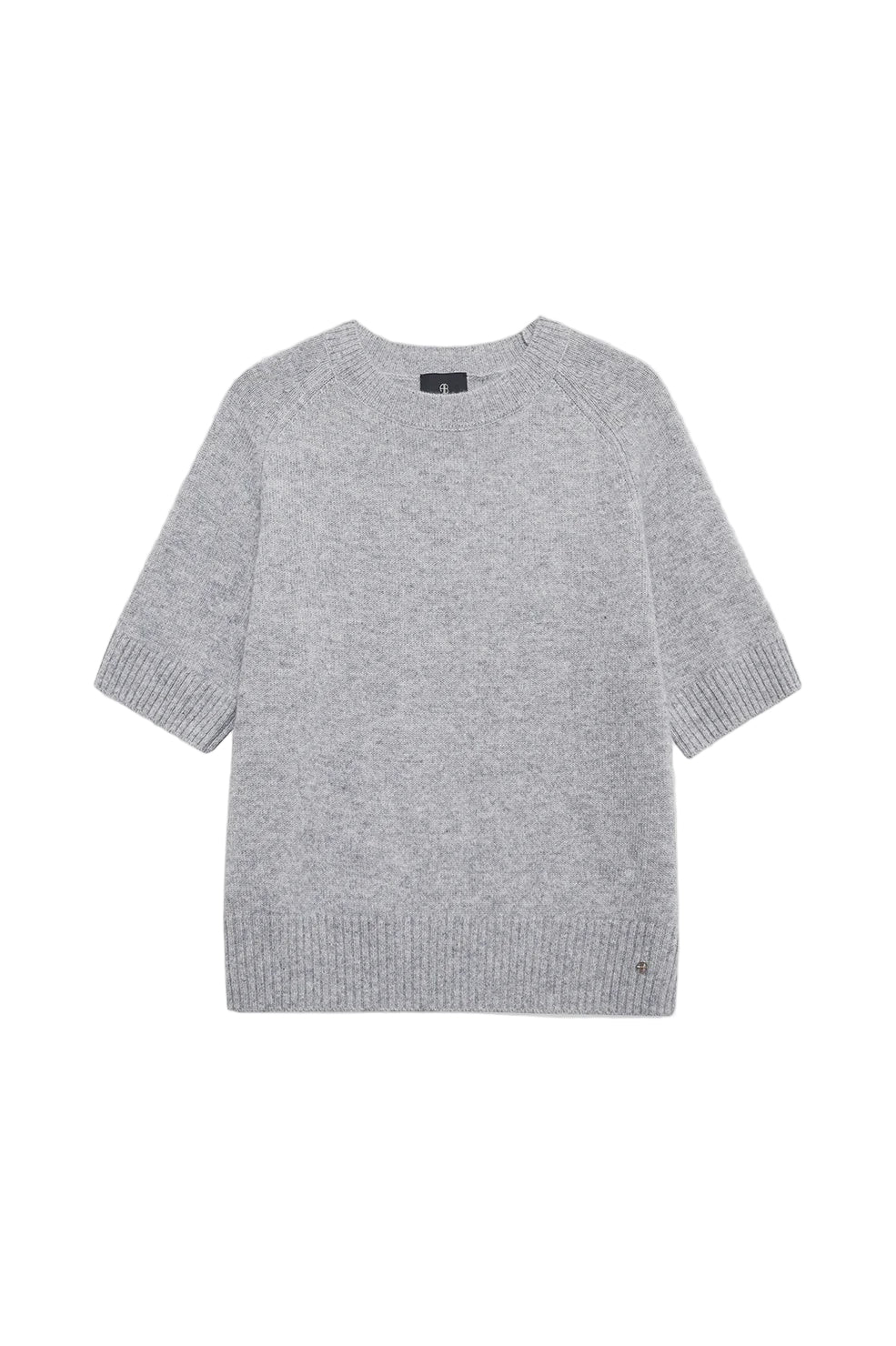 Anine Bing Jackson Sweater in Medium Heather Grey. The Jackson Sweater is a soft knit layer crafted in midweight, ultra-soft 100% cashmere in heather grey.