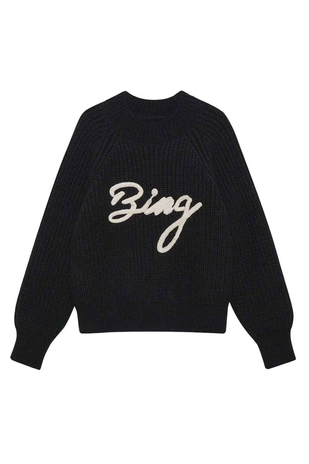 Anine Bing Kendrick Sweater Bing in Black. Made from a soft alpaca-wool blend, the Kendrick sweater is finished with signature AB branding at the front.