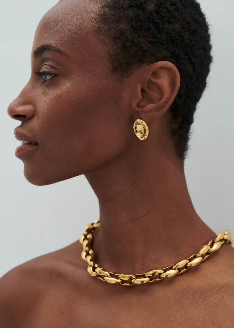 Anna Rossi Coffee Bean Dream Necklace in Gold. The Coffee Bean Dream Necklace features oversized chunky links and is a unique and eye-catching piece of jewellery. It is designed to capture the aesthetic look of a coffee bean link in a bold fashion statement.