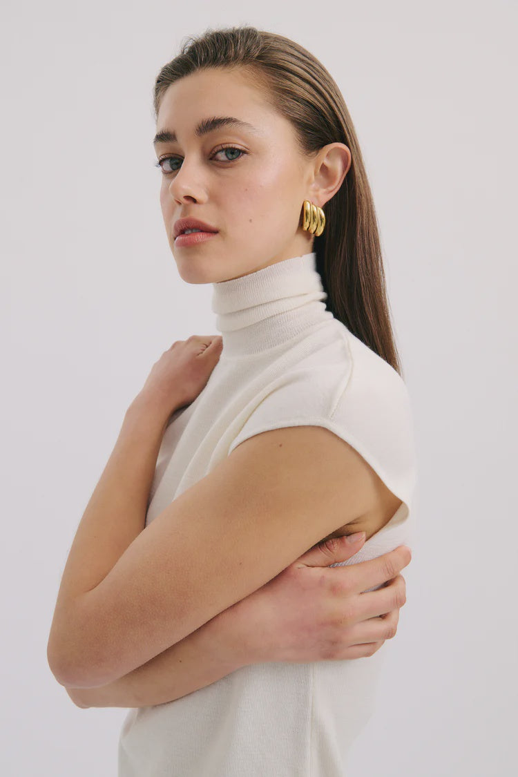 Anna Rossi Swept Piped Earrings in Gold. A new classic shape for the Anna Rossi Collection. The Swept Pipe Earring is made up by three hollow pipes that curve back towards the ear. Perfect for a day to night look, this earring is a timeless shape.