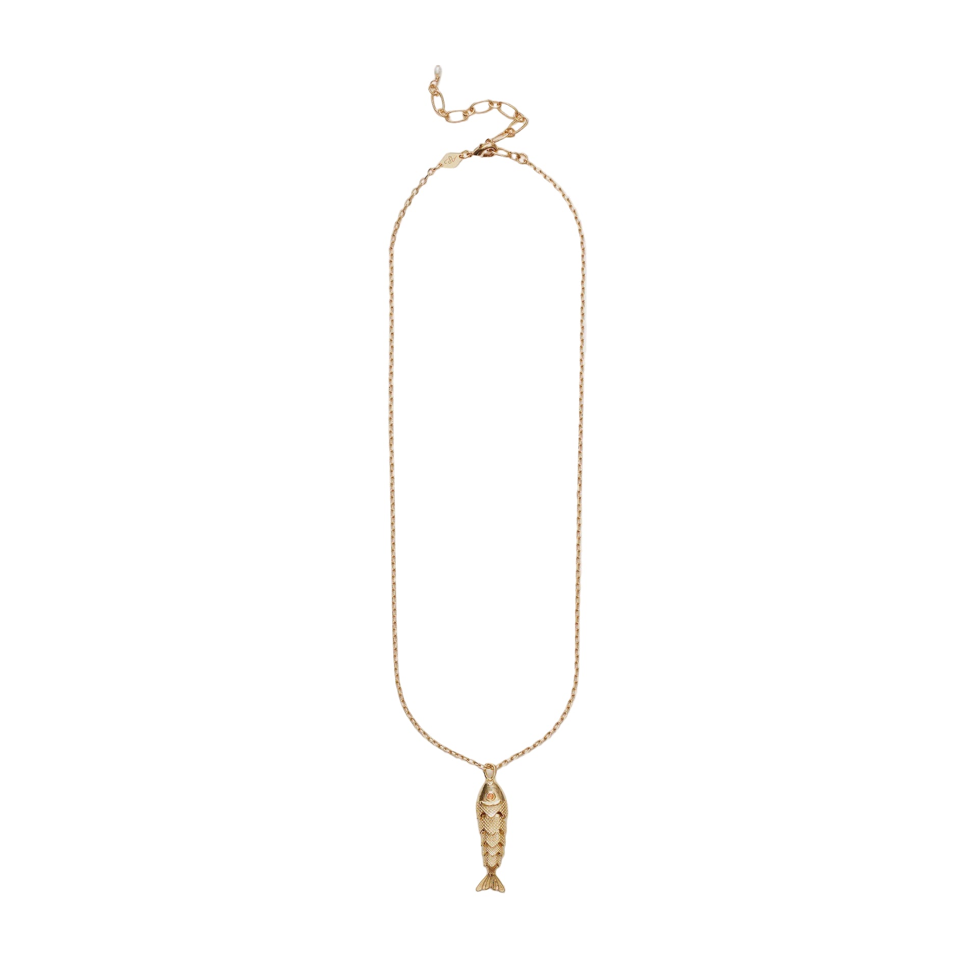 Anni Lu Something Fishy Necklace in Gold. The beloved Something Fishy Necklace is back! This classic piece, inspired by the 70's jewelry, brings a playful vintage feel. The delicate pendant moves just like a fish in the water.