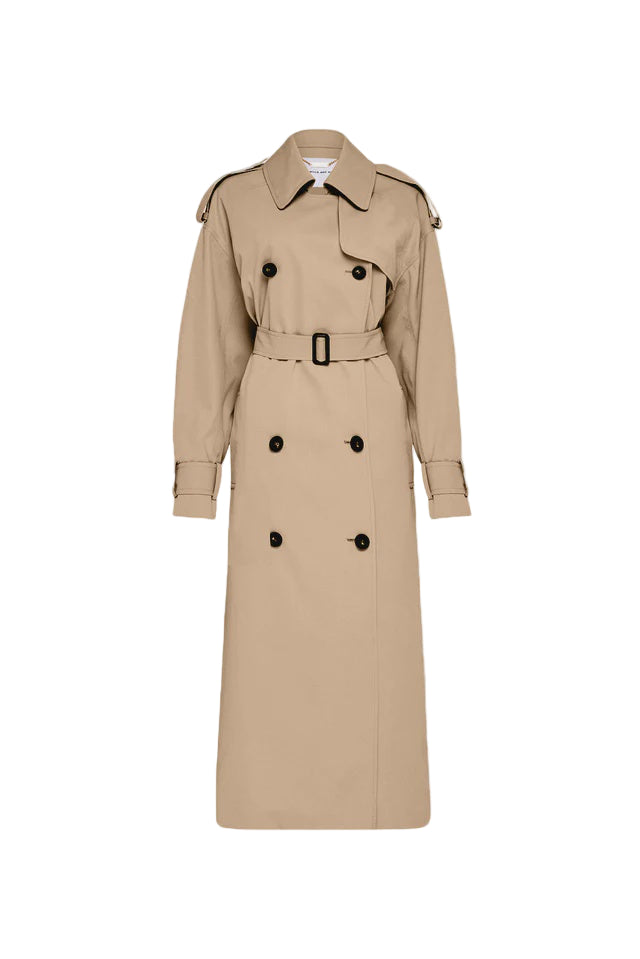 The Evans Trench Coat in Sand by CAMILLA AND MARC will be your transeasonal essential and will go with pretty much everything in your wardrobe. The trench coat in a deep green hue is cut in a classic double-breasted silhouette with traditional epaulets, storm flaps, a removable belt, and lined in recycled polyester. Wear yours with knitwear and leather or layered over your favourite sweat set.