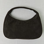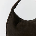 St Agni Suede Large Bon Bon Bag in Coffee. The Suede Large Bon Bon Bag is a refined companion designed for ease and everyday wear. Featuring a rounded, shoulder bag silhouette, the Suede Large Bon Bon Bag is secured with a zipper closure and finished with a cotton canvas–lined interior. An internal zip pocket offers practicality for high-rotation wear.