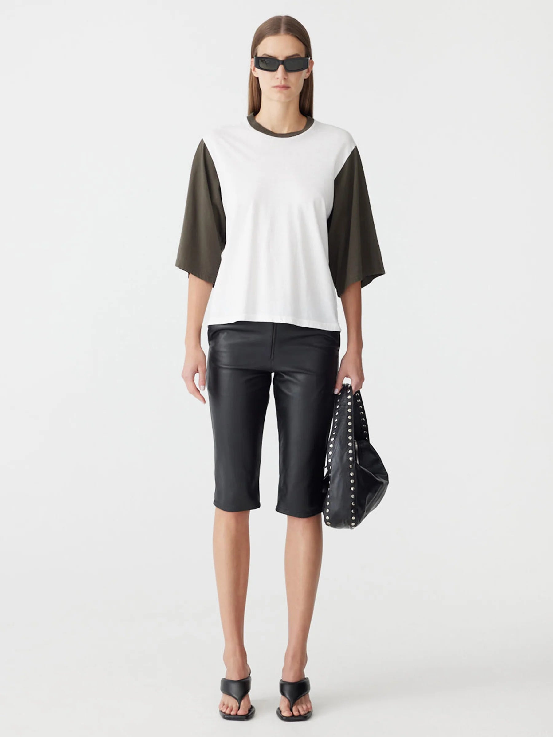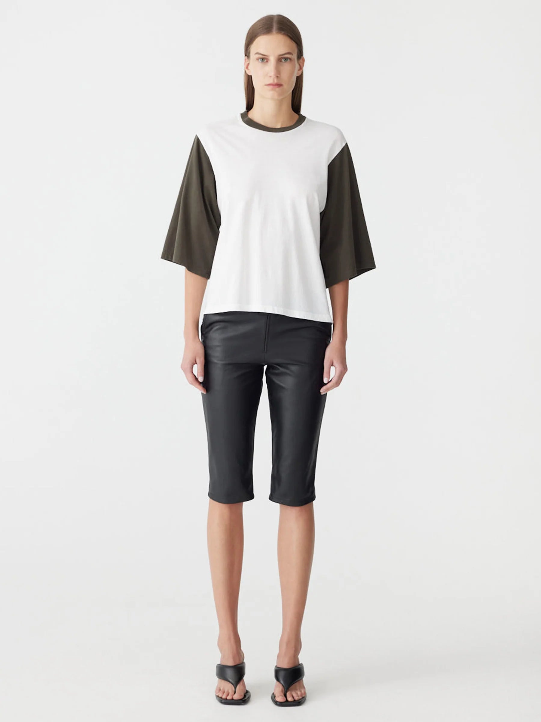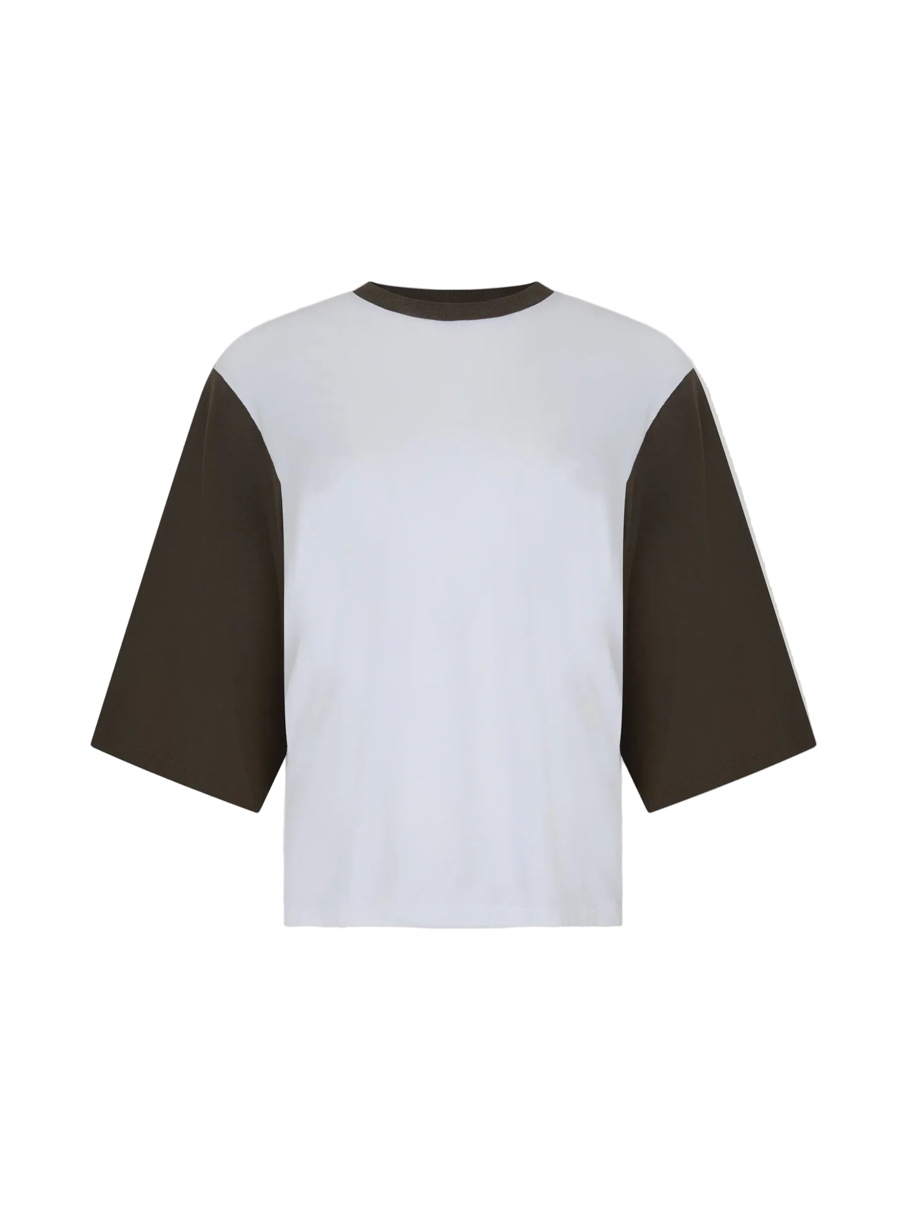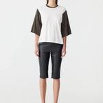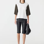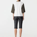 Bassike Contrast Boxy 3/4 Sleeve T-Shirt in White and Ash