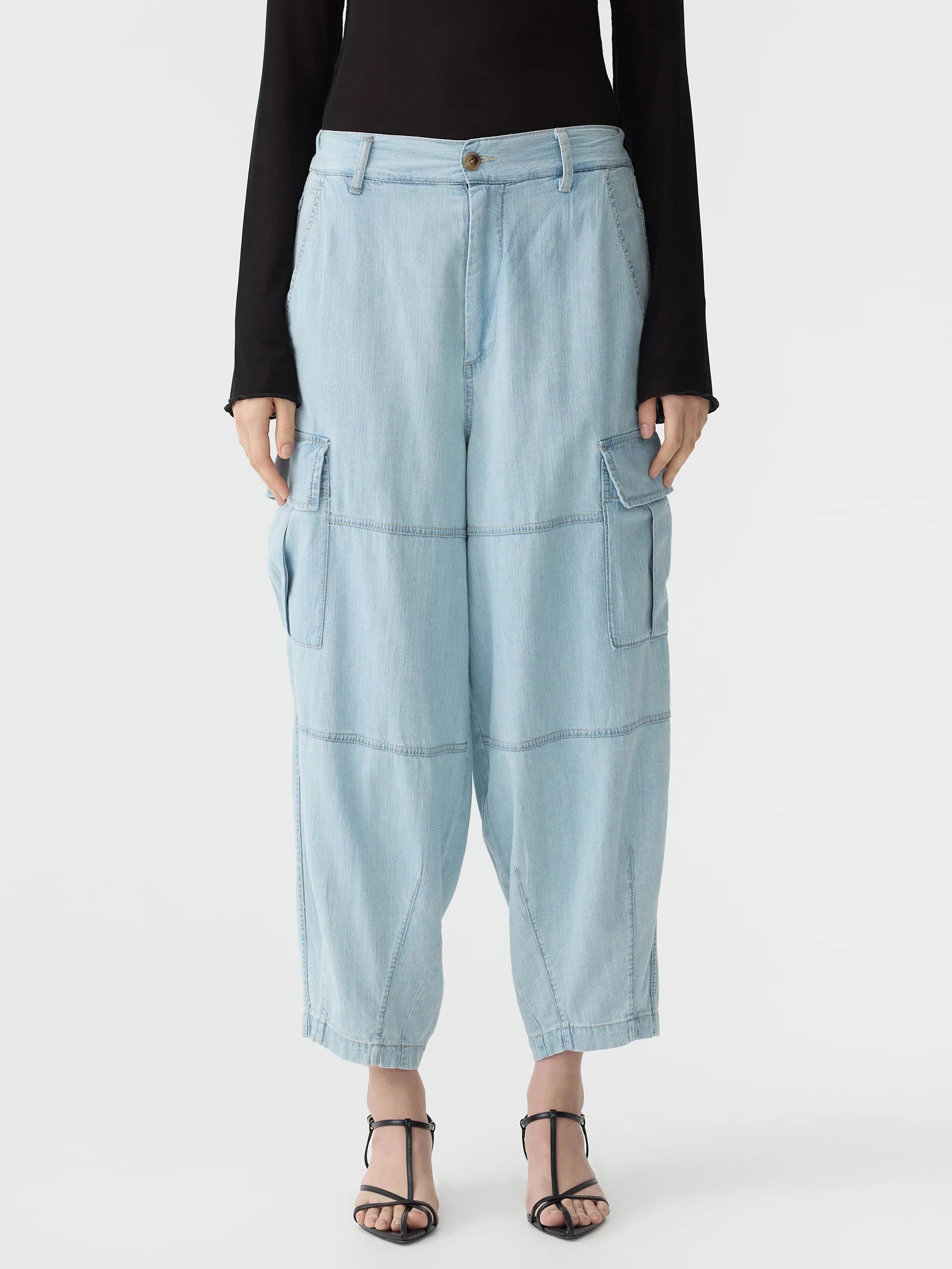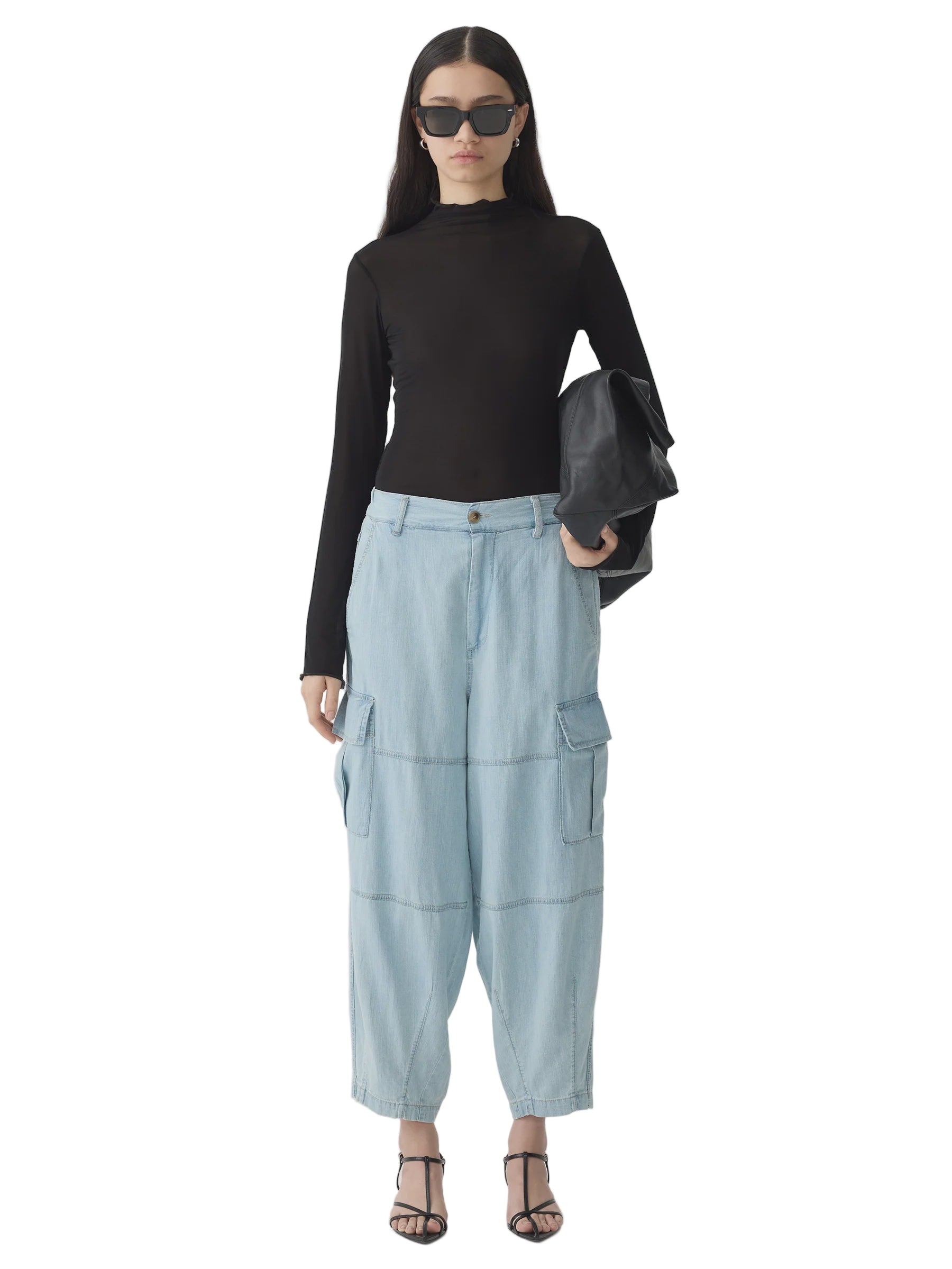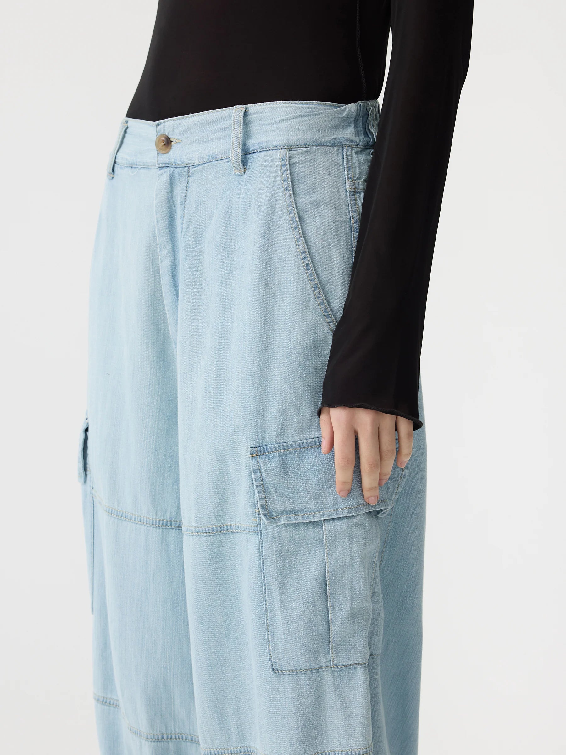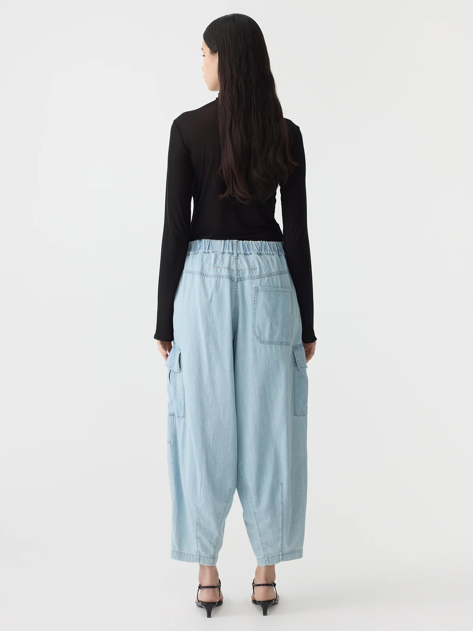 Bassike Denim Utility Cargo Pant in Light Vintage Blue.