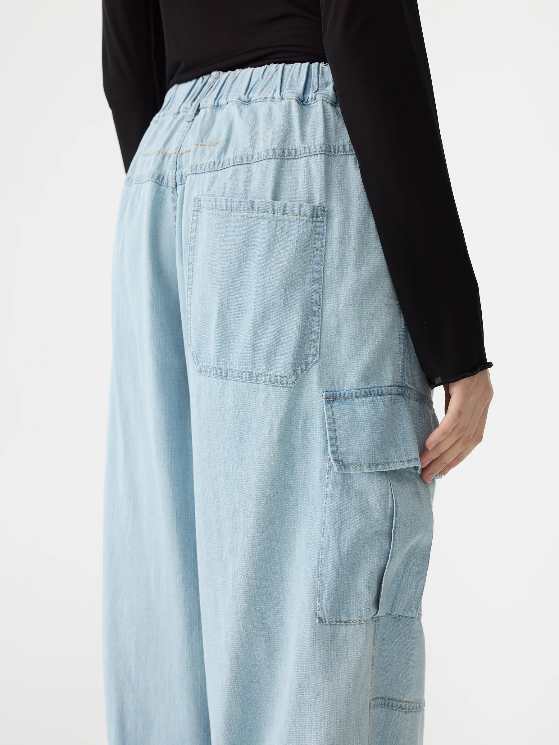Bassike Denim Utility Cargo Pant in Light Vintage Blue