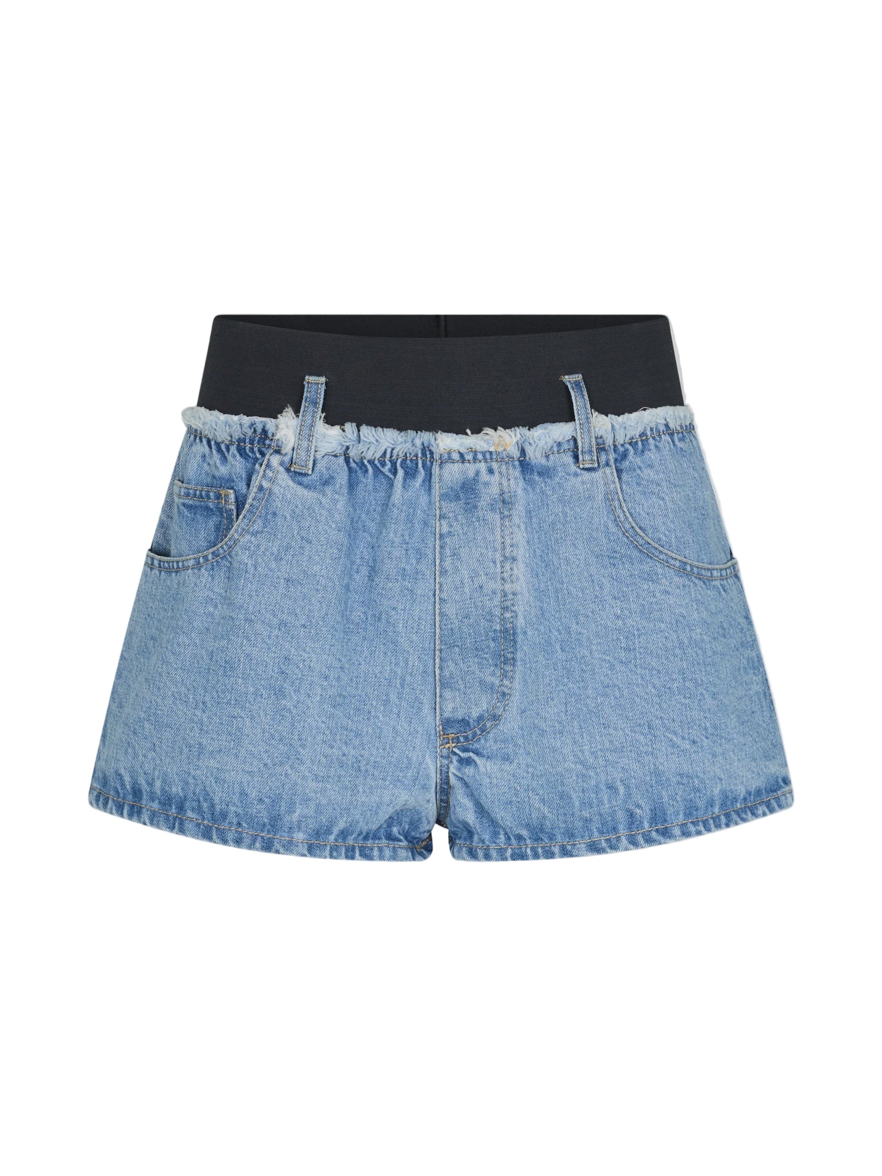 Bassike Elasticated Denim Short in Classic Blue Wash