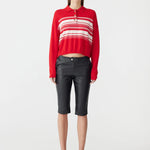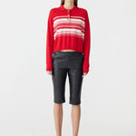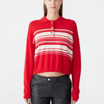 Bassike Stripe Wool Cashmere Polo in Red and Natural