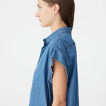 Bassike Organic Denim Sleeveless Dress in Washed Indigo