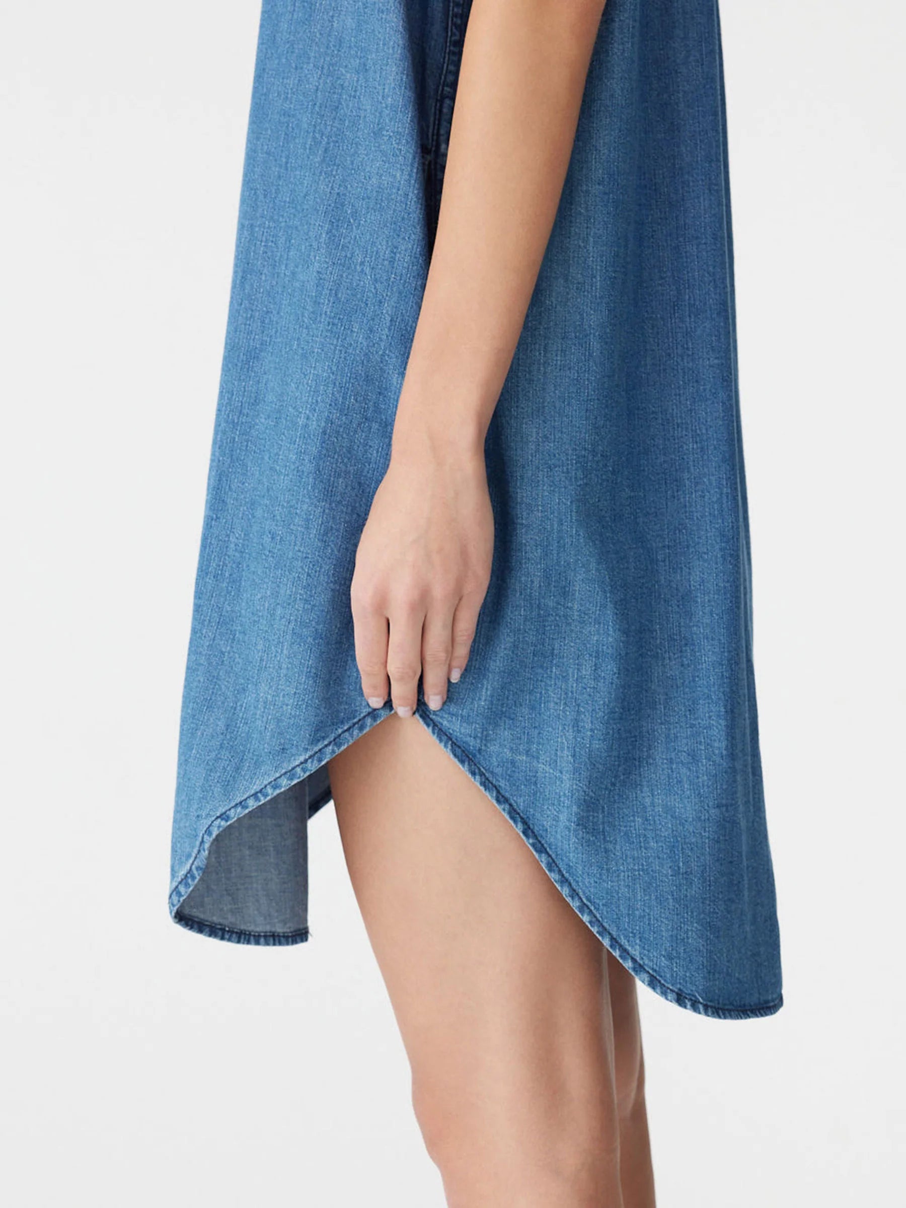Crafted from lightweight organic denim cotton made in Japan, the Organic Denim Sleeveless Dress is designed for a relaxed fit. Featuring a buttoned centre-front placket and collar, with raw sleeve hems. Finished with a double-layered back yoke, side-entry pockets and tonal topstitching throughout.