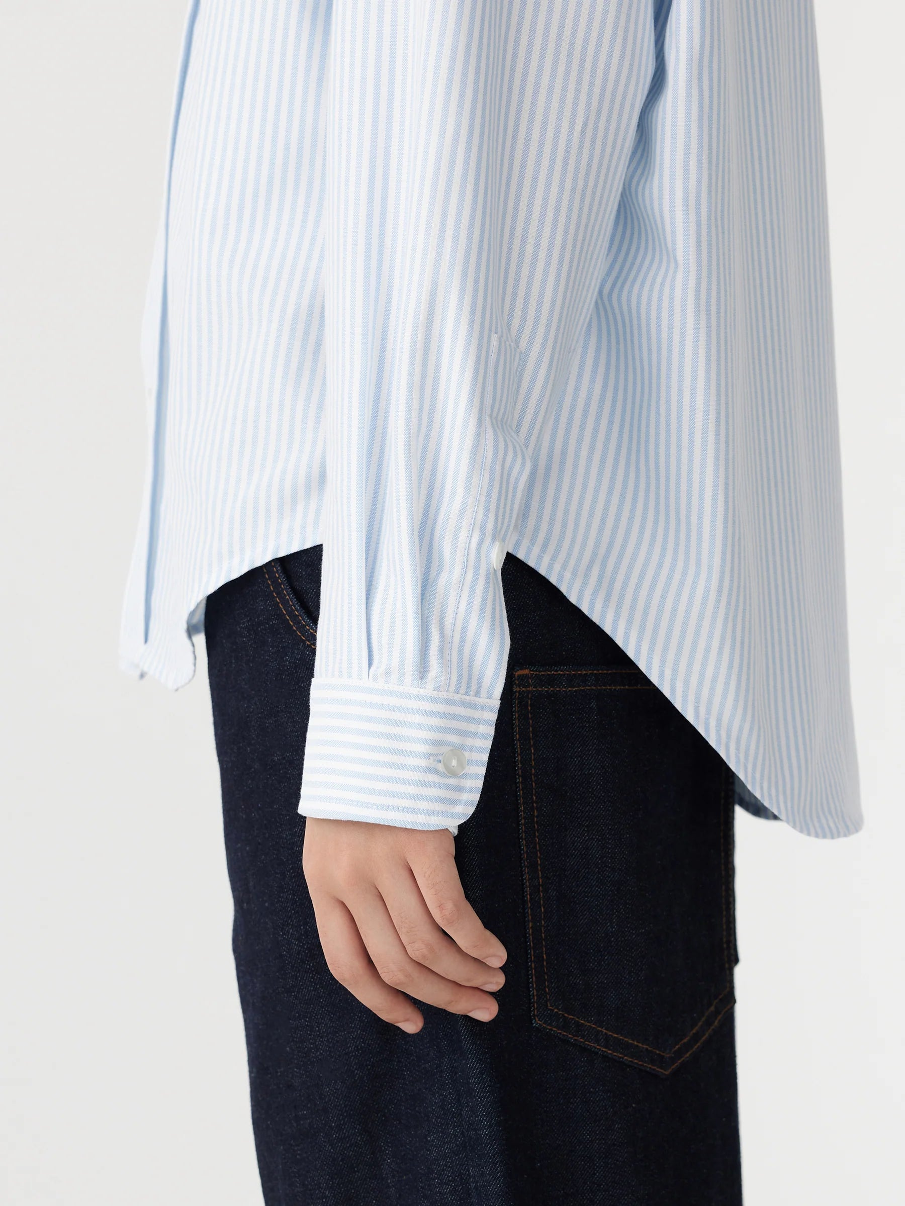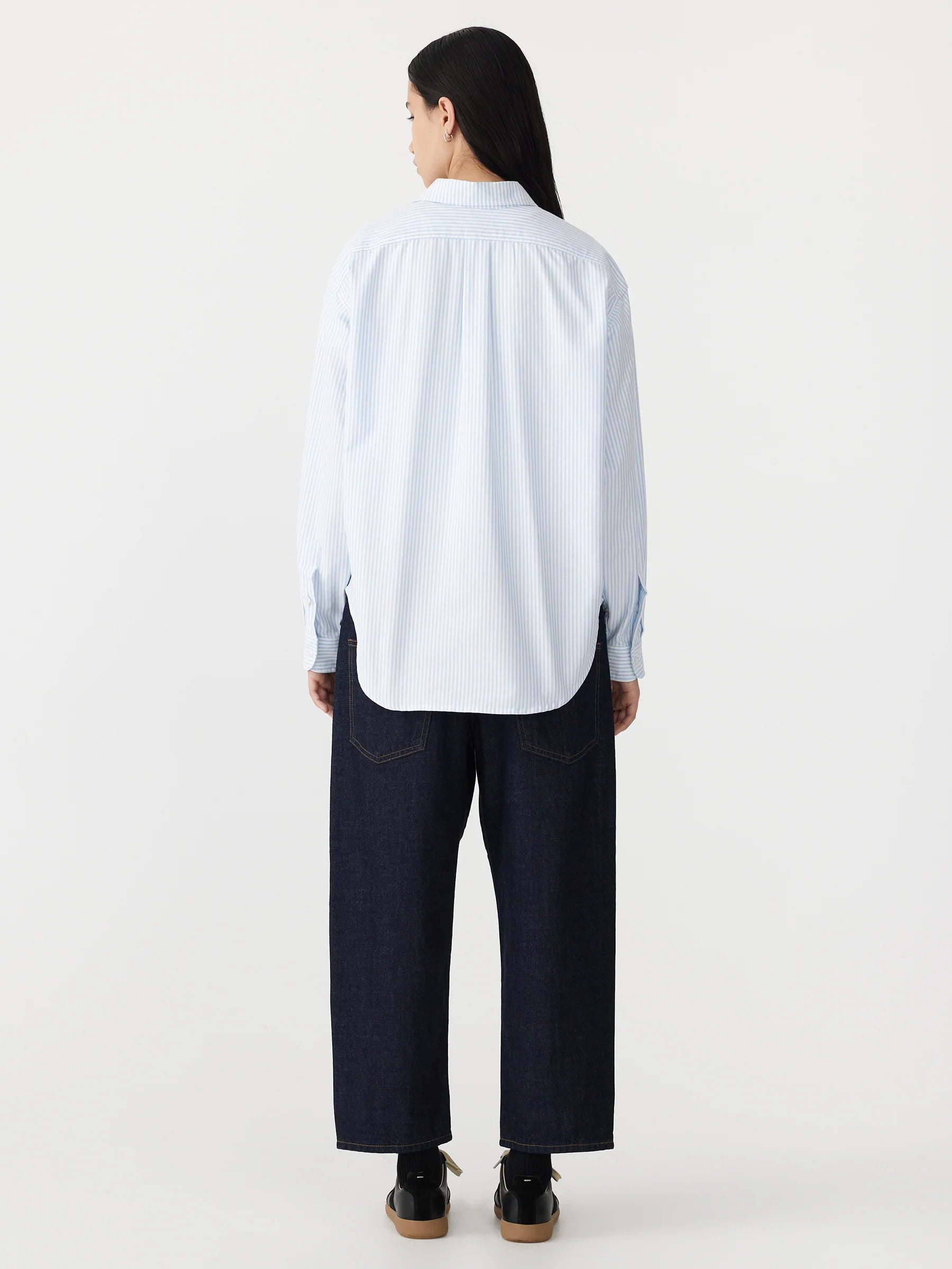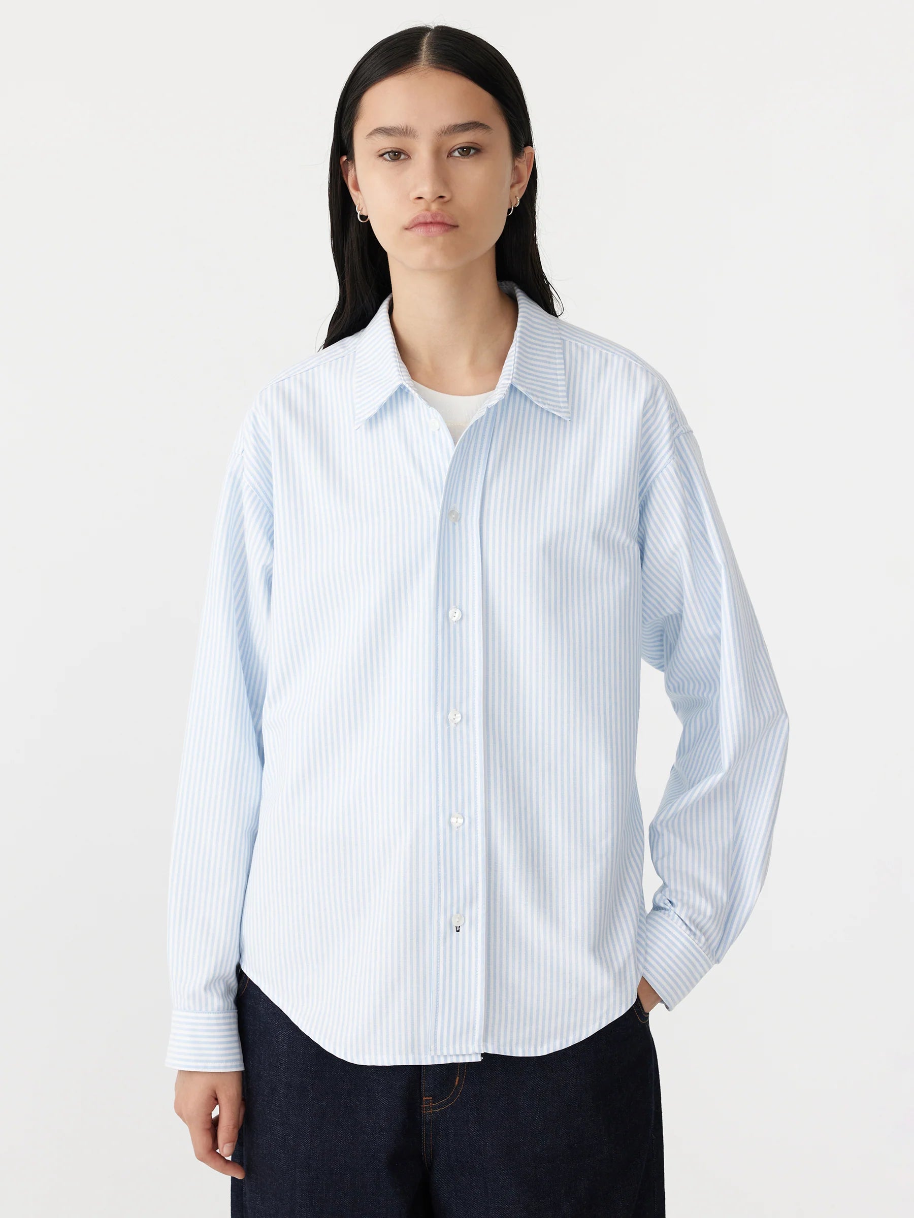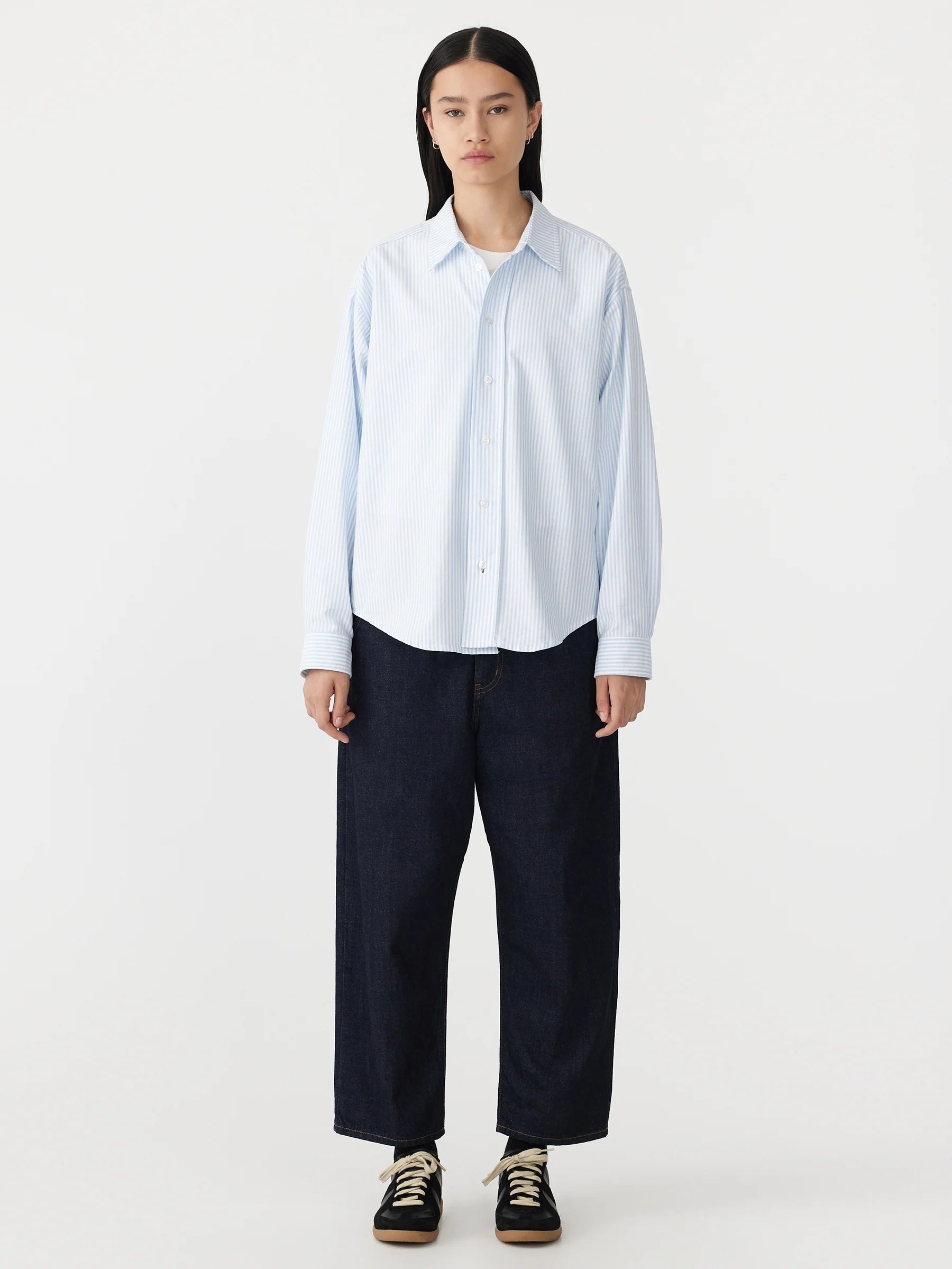 Crafted from 100% organic cotton, the universal oversized shirt shirt is designed with a boxy silhouette for a relaxed fit. The style is detailed with classic shirting notions including front buttoned closure, button-down collar and sleeve cuffs. Complete with a curved hem and back yoke and tuck.