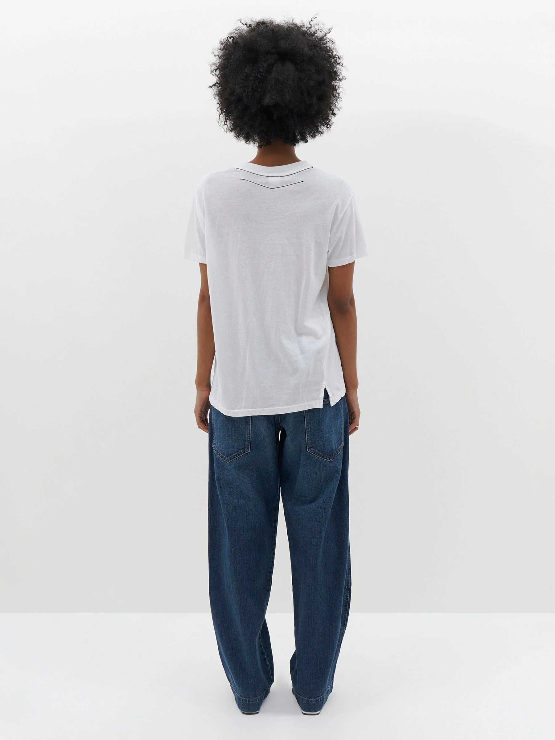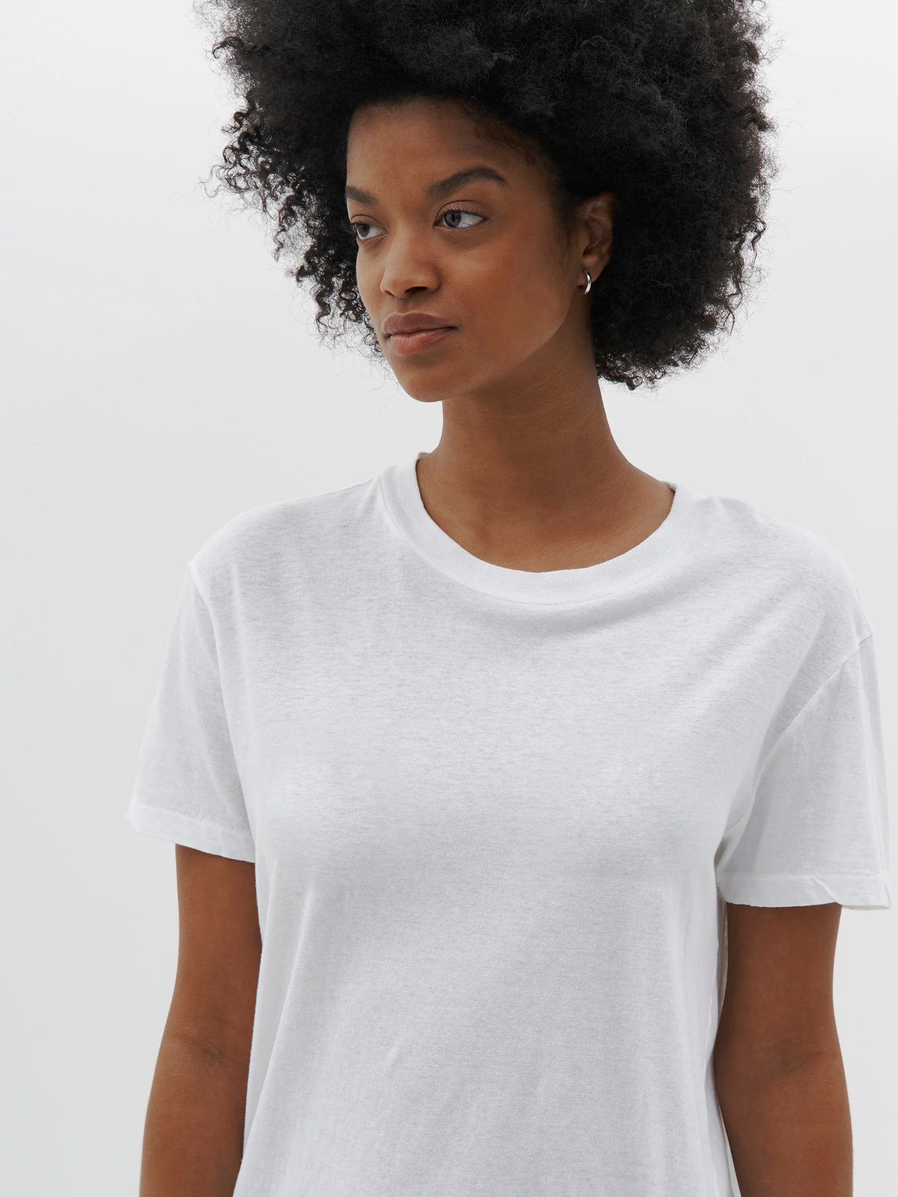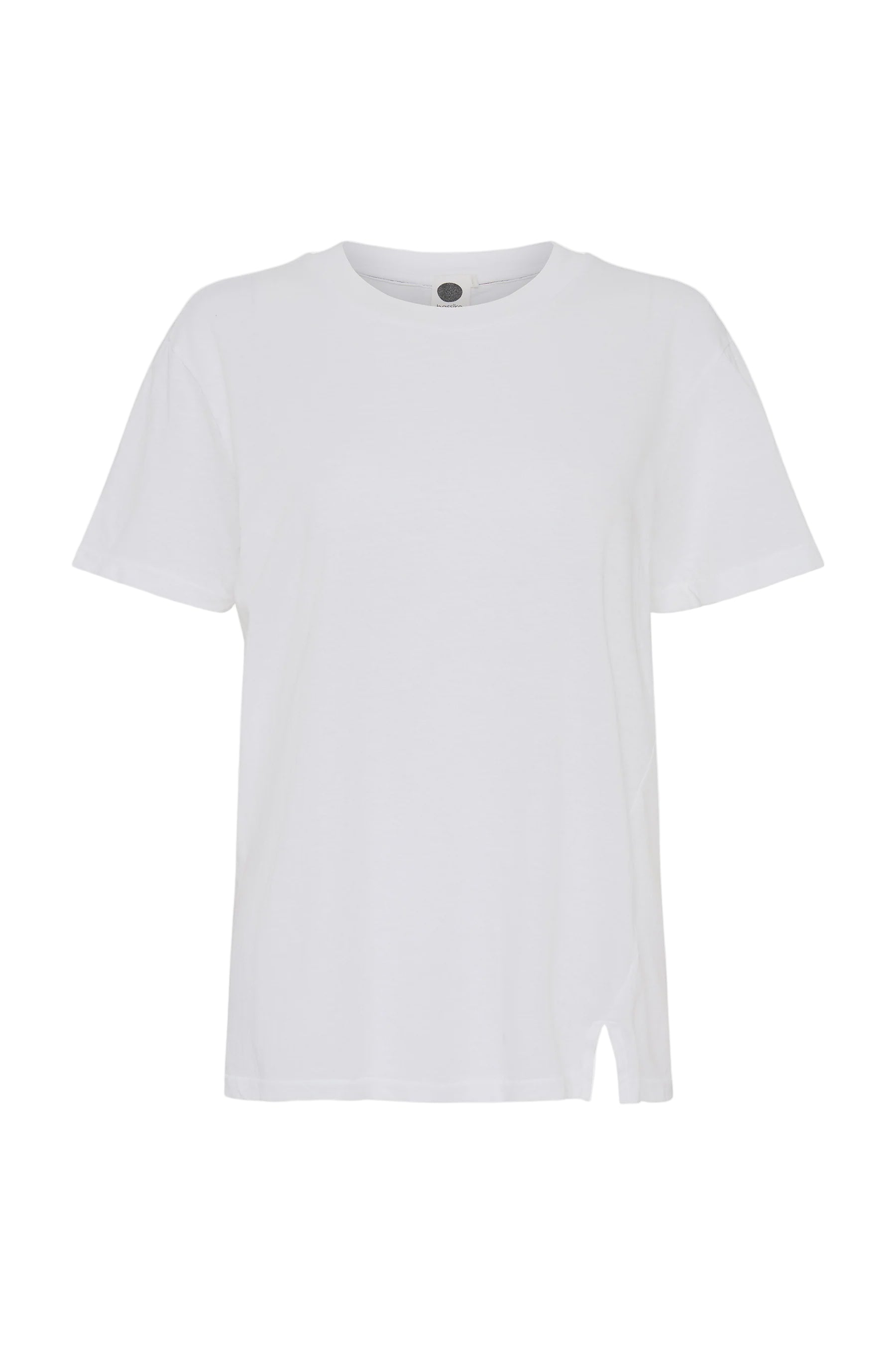 Bassike Regular Classic s/s T-Shirt in White. Regular fit short sleeve t.shirt in organic cotton jersey with vintage neckline.Signature contrast topstitch detail on back neck. Slimmer update of our classic vintage t.shirt.