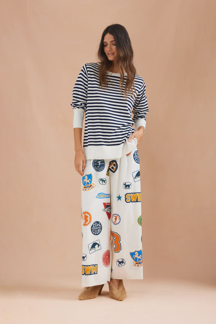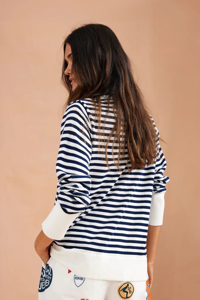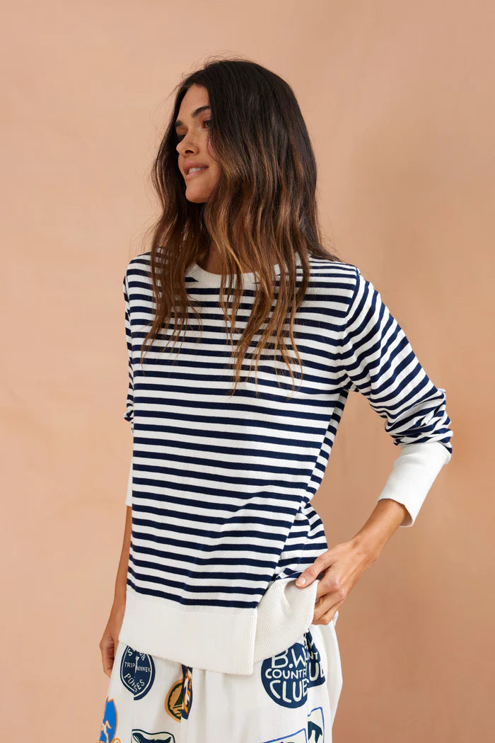 Binny Regatta Top in Navy. Off the Deck, Add To Cart. The Regatta top in navy and white is plain sailing - classic, effortless and always on course. We will never stop bring you navy & white stripes & this season its in a soft 100% cotton knitted version. White blanket stitch to bring some Binny details. Throw on and go, no life jacket required.