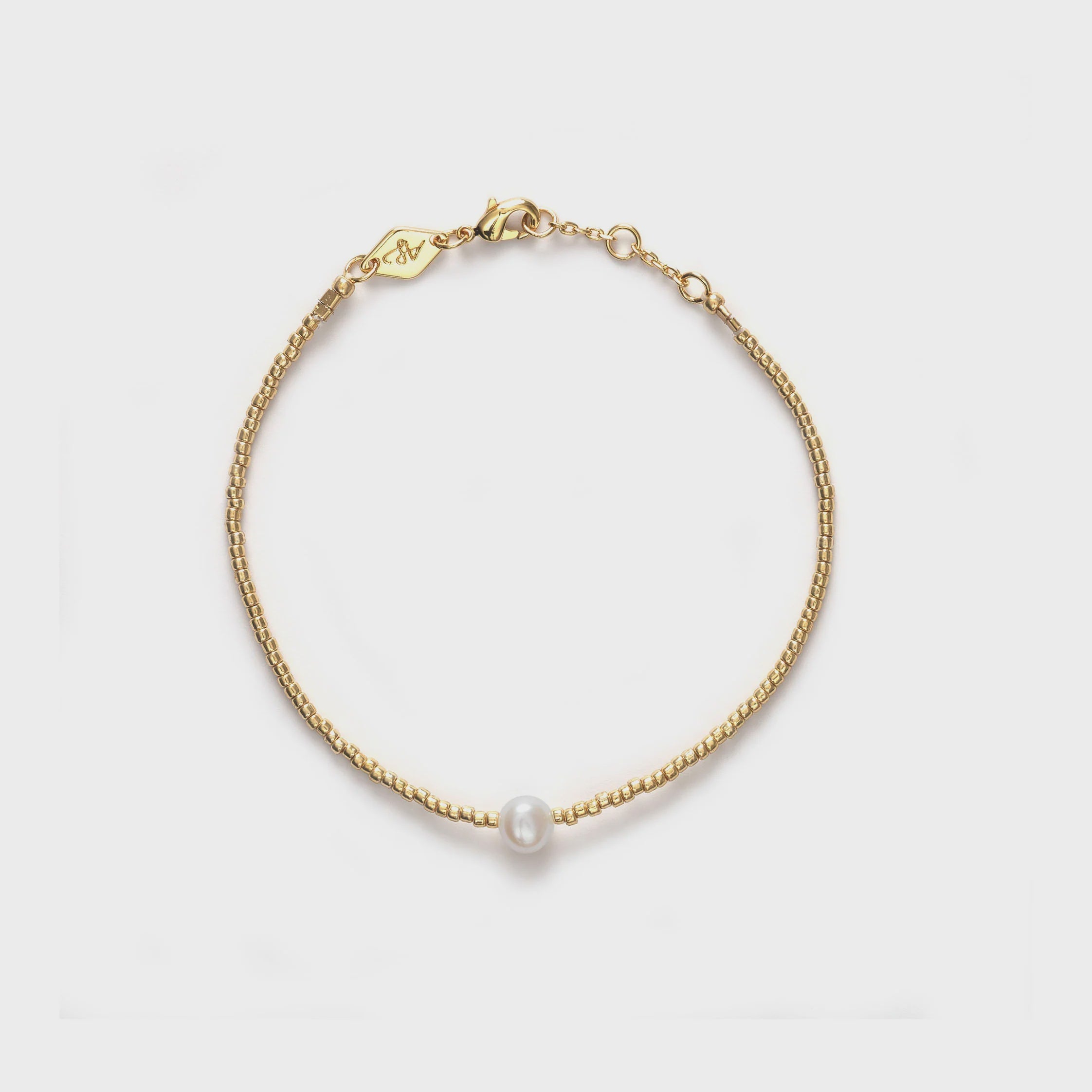 Normally we live by ”more is more”, but this delicate golden bracelet with a small freshwater pearl in the center has won our hearts (and wrists).