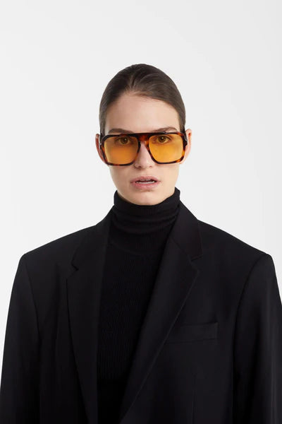 Always keep sunglasses in the case or pouch provided when not being worn. Store sunglasses in a dry place with a low to moderate temperature. Avoid wearing these sunglasses on the top of your head to prevent the stretching of hinges and frame distortion. To clean your sunglasses, use the soft lens cloth provided to preserve the quality of the lenses and acetate.