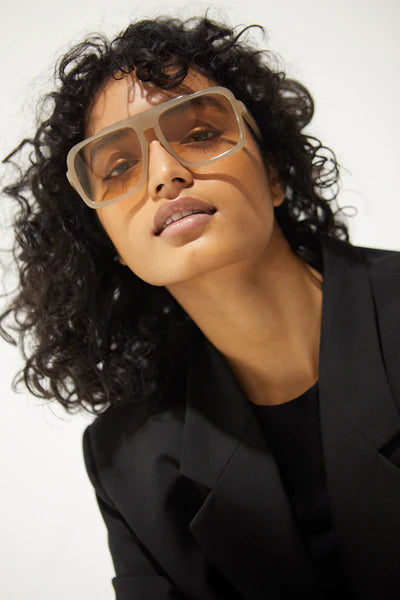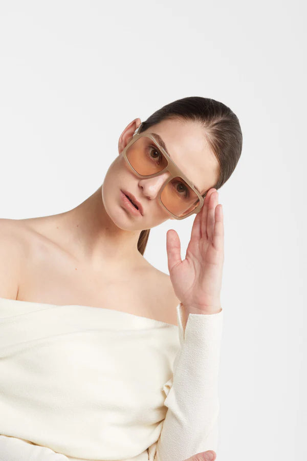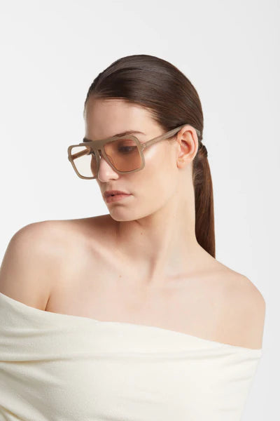 Bresac Frame 4 in Taupe. Frame BF04 is a vintage-inspired navigator aviator style frame. Bold design details and oversized lenses make for a statement, yet versatile frame. Crafted from the finest European materials, this frame is superior in terms of appearance and longevity.