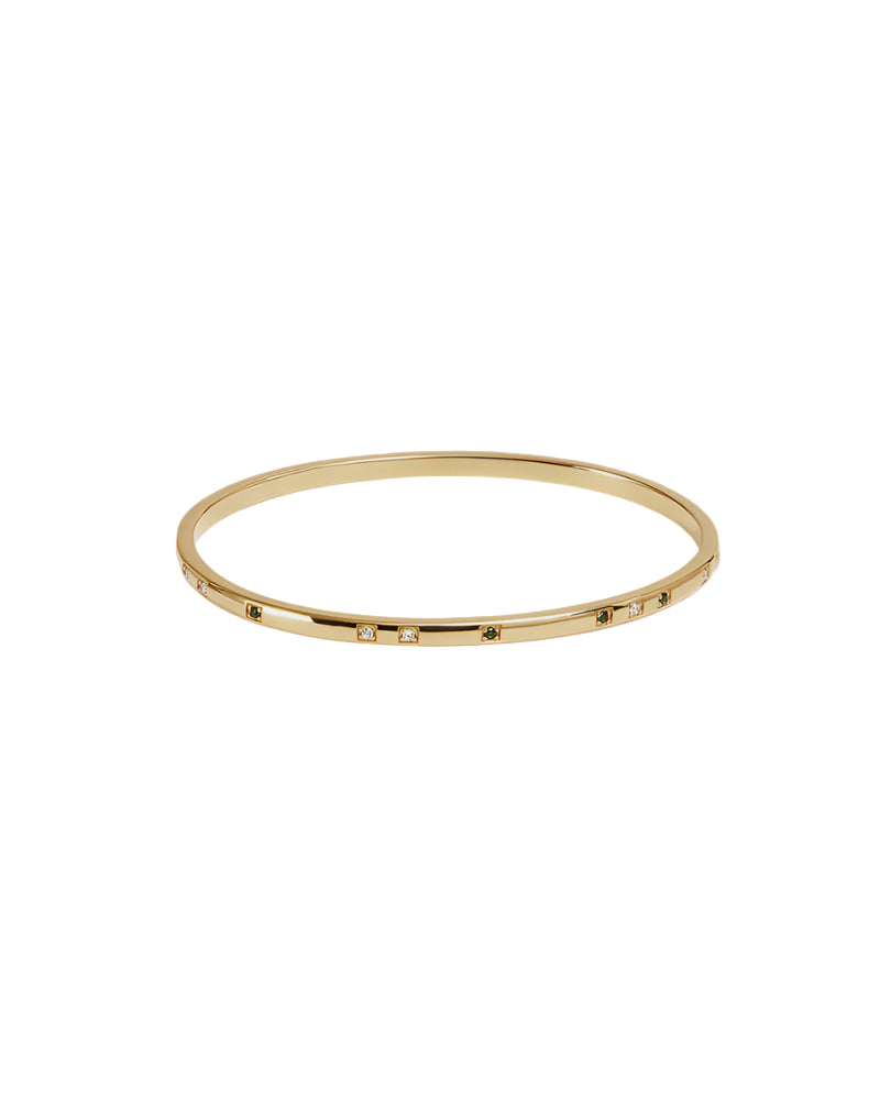 By Charlotte Depth of You Bangle in 18K Gold. Our 18k Gold Vermeil Depth of You Bangle draws inspiration from the profound depths of the sea, bringing a sense of calm as you look inward. Featuring a polished finish and encrusted with white and green cubic zirconia crystals in claw settings, this radiant bangle is the perfect eclectic addition to your bracelet stack.