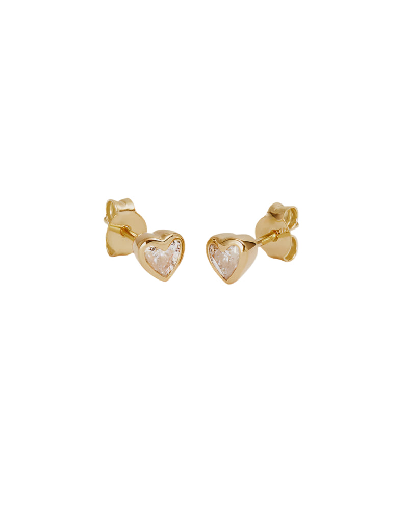 By Charlotte Radiant Heart Stud Earrings in 18K Gold Vermeil. Set with heart-cut crystals in a bezel setting, the Radiant Heart Stud Earrings represent love in its purest form. Shine with love from within - authentic and unfiltered.