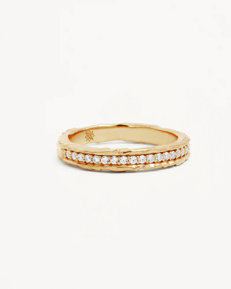 By Charlotte Sunkissed Horizon Ring in 18K Gold Vermeil. Inspired by the sunkissed horizon and the infinite sparkling seascape, our 18k Gold Vermeil Sunkissed Horizon Ring is the ultimate stacking ring. Featuring cubic zirconias in a classic band design, this delicate ring captures the spirit of the calm sea.