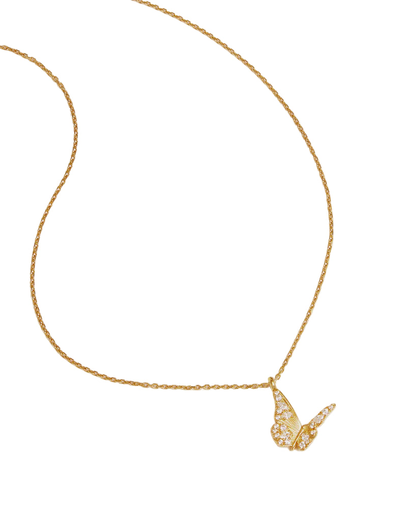 Capture the essence of love with our 18k Gold Vermeil Wanderlust Necklace, encrusted with round and marquise cut crystals scattered in a sparkling winged design. Set on our signature diamond cut cable chain, the butterfly, in its silent grace, is a reminder to radiate warmth, love and quiet confidence from the inside out. Style this pendant-style necklace with our collection of meaningful chains and chokers.