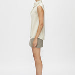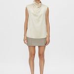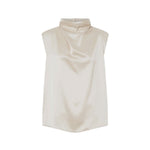 Camilla and Marc Aviana Shell Top in Cream. The Aviana Shell Top is crafted from a lightweight yet structured fabrication blend in a relaxed silhouette. This top features a draped neck and side seam splits for ease of wear.