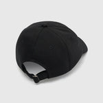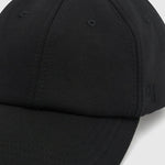 Camilla and Marc Amira Cap in Black. The Amira Cap features a soft, relaxed silhouette crafted from neoprene twill for a contemporary finish. An embroidered monogram logo sits subtly on the side, adding a refined touch. The adjustable tab at the back ensures a comfortable fit, complemented by sleek metal slider hardware.