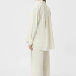 Camilla and Marc Carlisle Overshirt in Ivory Marle. The Carlisle Overshirt offers a refined take on layering with its soft suiting fabric and tailored design. Featuring a forward shoulder seam, a neatly stitched collar, and a centre-back pleat, this overshirt blends structure and ease seamlessly. Thoughtful details like the elegant sleeve cuffs elevate this versatile wardrobe essential.
