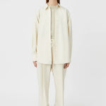 Camilla and Marc Carlisle Pant in Ivory Marle. The Carlisle Pant is a versatile wide-leg trouser crafted from soft suiting fabric for effortless sophistication. Featuring an elasticated waistband with a drawcord and deep tucks with gathers at the waist seam, the design offers both comfort and refined structure. Sitting mid to low on the waist, these trousers provide a relaxed yet polished silhouette suitable for any occasion.