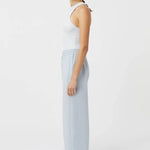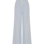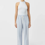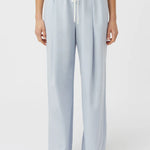 Camilla and Marc Elliot Pant in Blue Haze. The Elliot Pant offers a blend of comfort and style with its elasticated waist and deep tucks designed to sit comfortably on the hips. Featuring a cotton drawcord for a customisable fit and inseam pockets for practicality, these pants provide both functionality and a modern aesthetic. Perfect for everyday wear, the Elliot Pant combines ease with a contemporary edge.