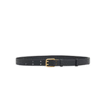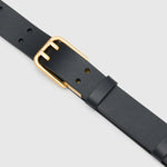 - Long Leather belt with gold double prong buckle