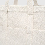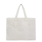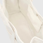 Camilla and Marc Lucia Tote in Ecru. The Lucia Tote is a versatile and stylish accessory, crafted from soft monogram toweling for a textured finish. Featuring convenient side and front external pockets and a magnetic closure, it’s designed for both practicality and everyday ease. Lined with natural cotton canvas, this tote is perfect for carrying essentials while maintaining a modern, effortless look.