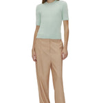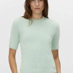 Camilla and Marc Maxime Top in Dusty Mint. The Maxime Top features a textured knit design, expertly crafted for a sleek, fitted silhouette. Its ribbed neckband, hem, and sleeve cuffs offer a refined finish and comfortable fit. Perfect for layering or wearing solo, this top combines style with versatility.
