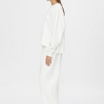 Camilla and Marc Thea Lounge Pant in Soft White. The Thea Lounge Pant is crafted from a cotton blend in a mid-rise, slouchy silhouette. This pant features an encased elasticated waistband with inseam side pockets.