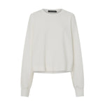Camilla and Marc Thea Lounge Sweat in Soft White. The Thea Lounge Sweater is crafted from a cotton blend in a relaxed, crew neck silhouette. This piece features a ribbed blind hem with twin needle stitch finishing and side seam splits.