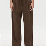CAMILLA AND MARC Serra brown mid-waist cotton fisherman pant. Elastic waistband, dropped crotch, inseam pockets.