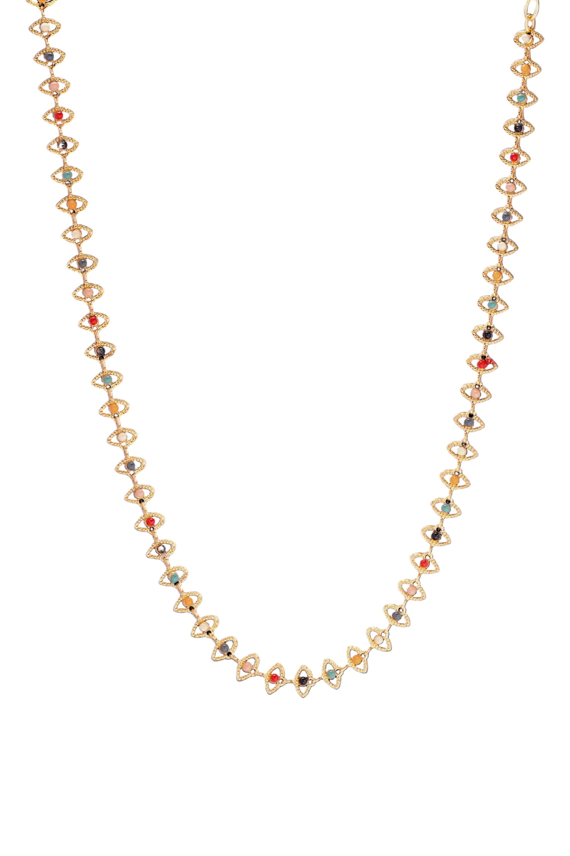 A style for positive vibes only, our tiny sparkling evil eyes are linked throughout the entire gold chain for a minimalist but chic, colourful look. This delicate protection necklace is the perfect gift for her, or someone special you want to pass on good energy to.