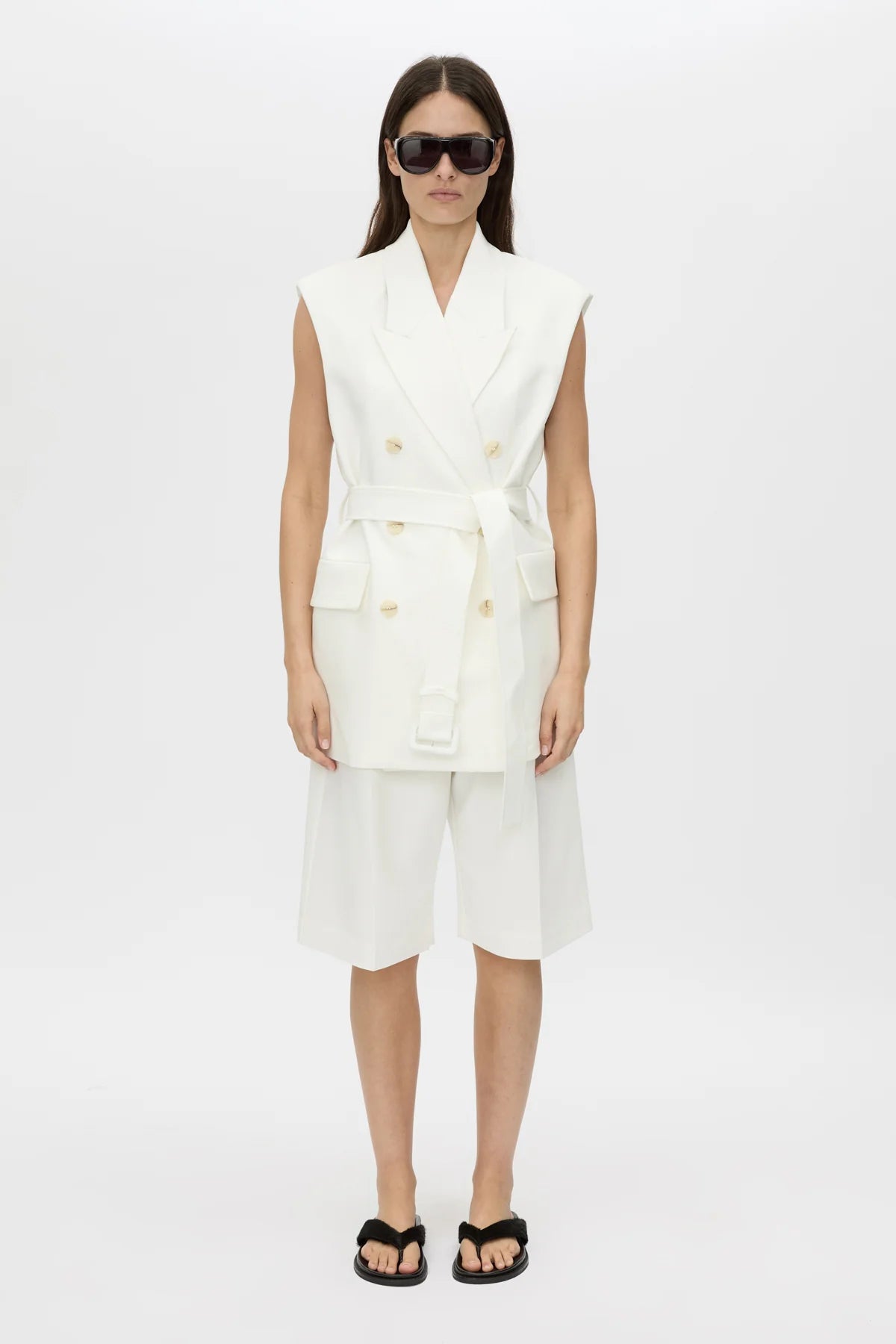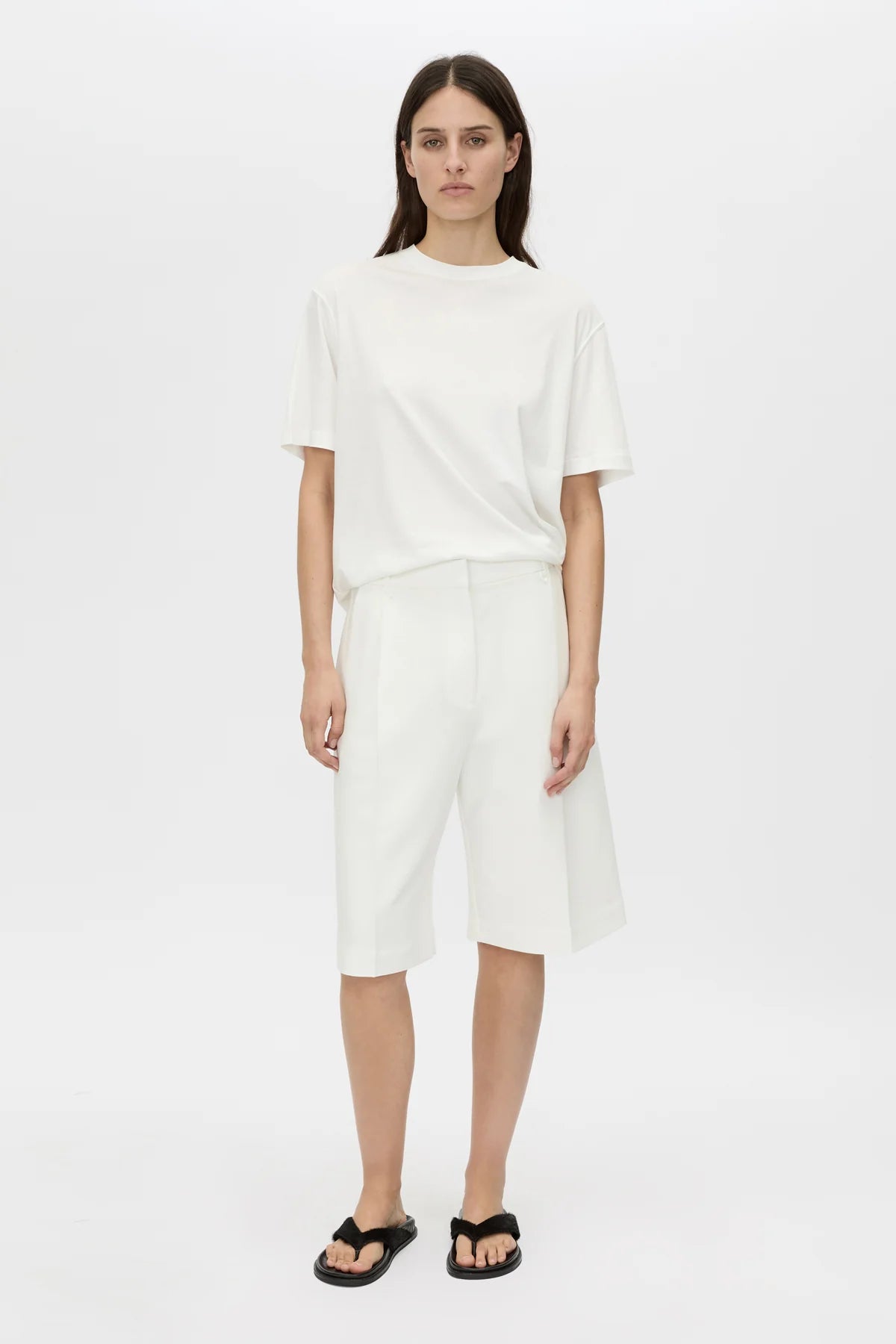 Camilla and Marc Astor Short in White. The Astor Short is crafted from a lightweight yet structured blend in a mid-rise Bermuda short silhouette. This short features pleats at the front and is fully lined.