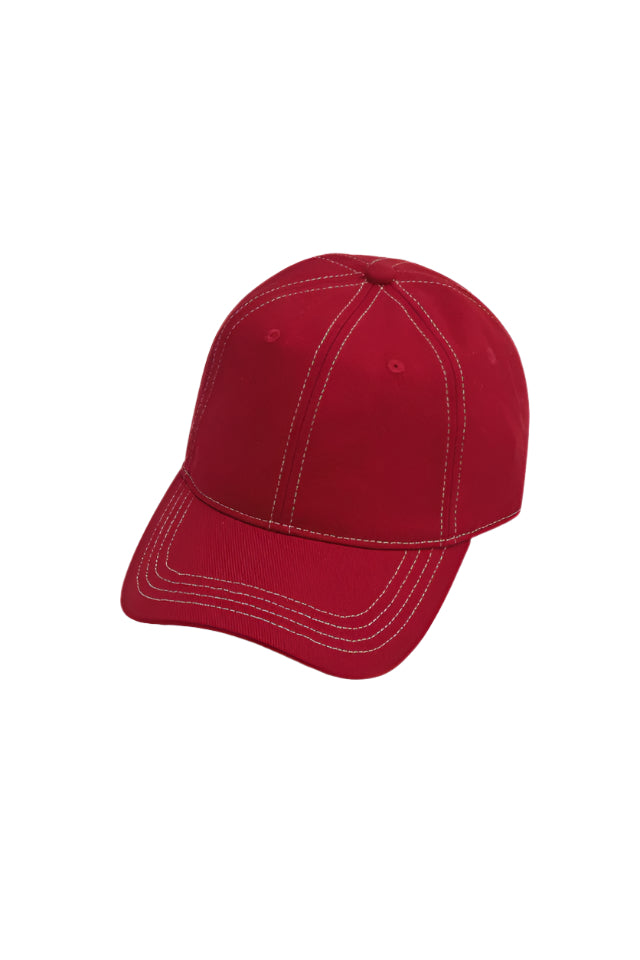 Camilla and Marc August Cap in Ruby Red. The August Cap is crafted from cotton in a relaxed baseball cap silhouette. This piece features an embroidered monogram at the back with an adjustable tab.