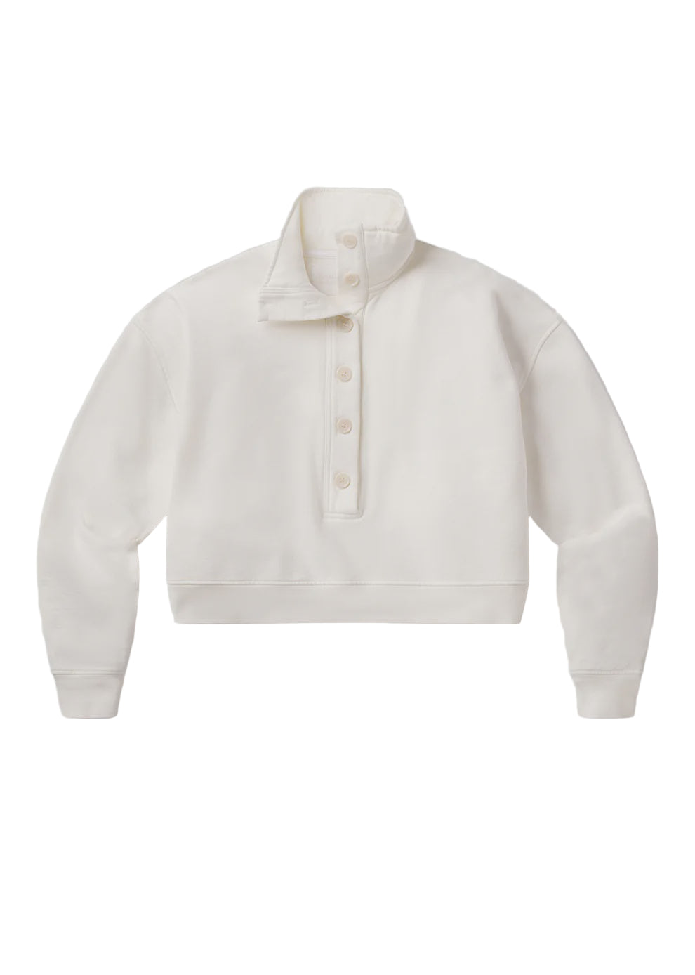 Looks Like: Off white funnel neck sweatshirt with button closure