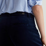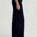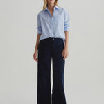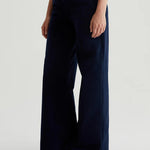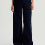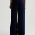 AG Jeans Stella in Deep Trenches. Our Stella low-slung palazzo pants are cut from stretch-blend mini corduroy in a deep blue shade. Designed to be worn lower on the waist, the pair is balanced by a super-wide cut through the legs. Soft and plush, these wide-leg pants have a tailored look with slant pockets at the front.