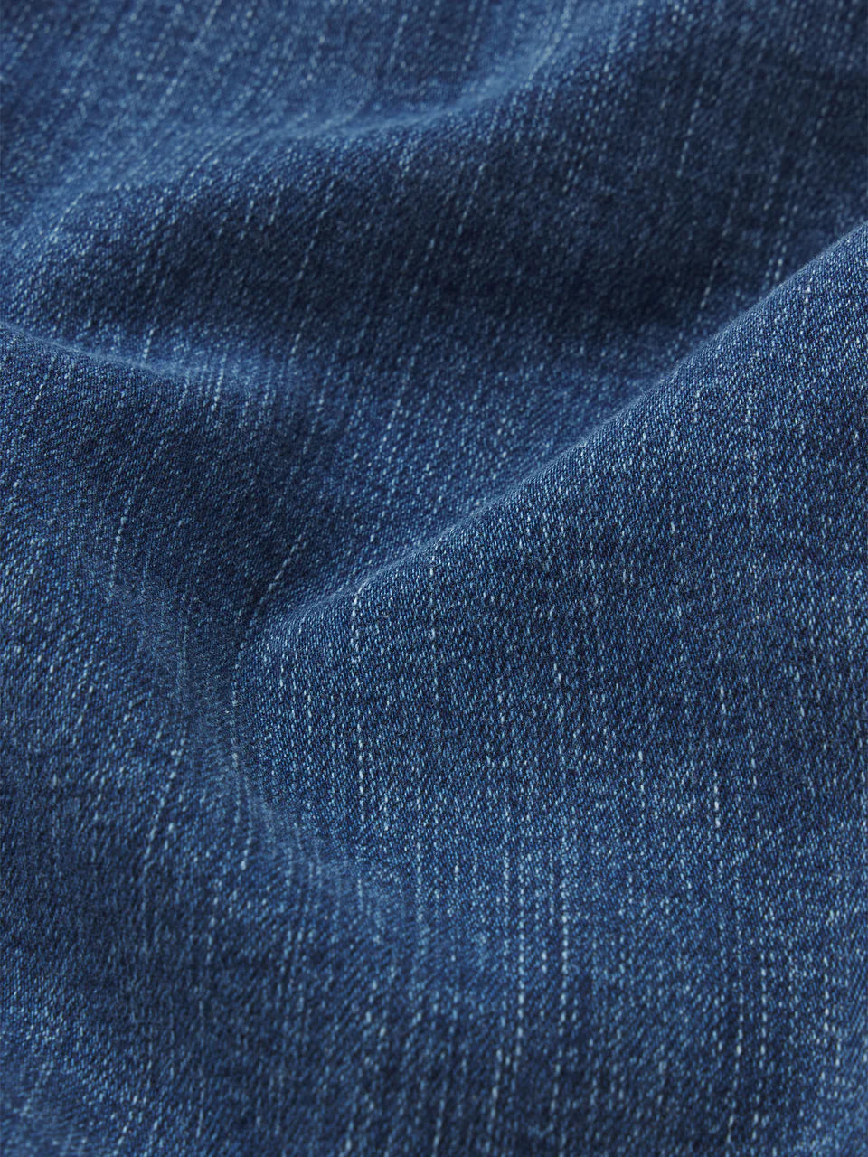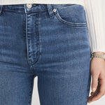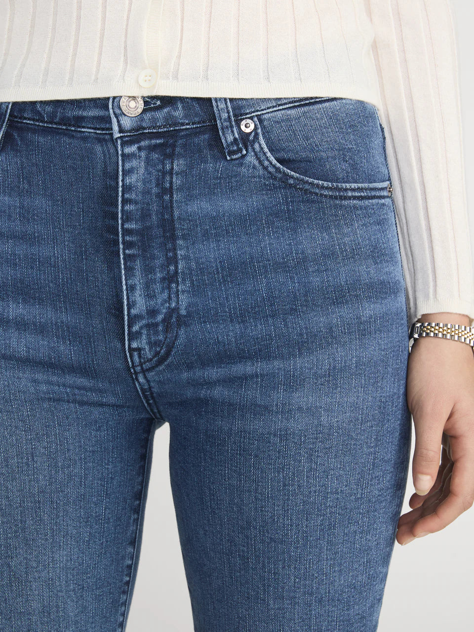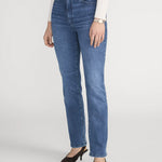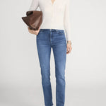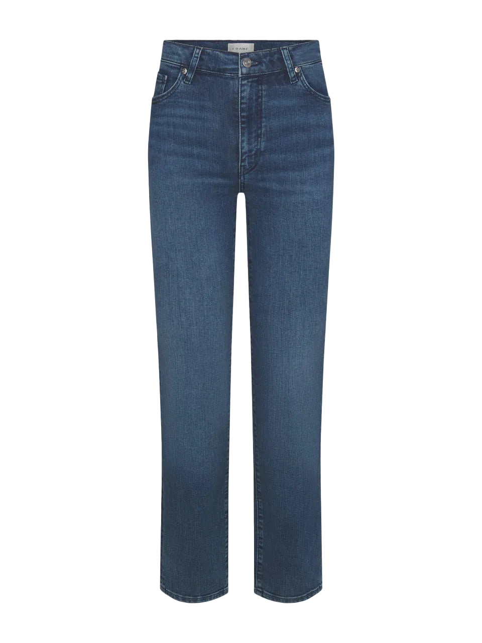 Frame Le Sleek Straight in Ease. The ultimate straight-leg jean crafted from super stretch denim for all day comfort. Le Sleek Straight features a high rise and relaxed straight leg that hits at the ankle, perfectly designed to be dressed up or down, and worn all day, everyday.